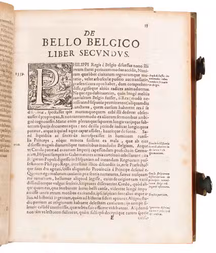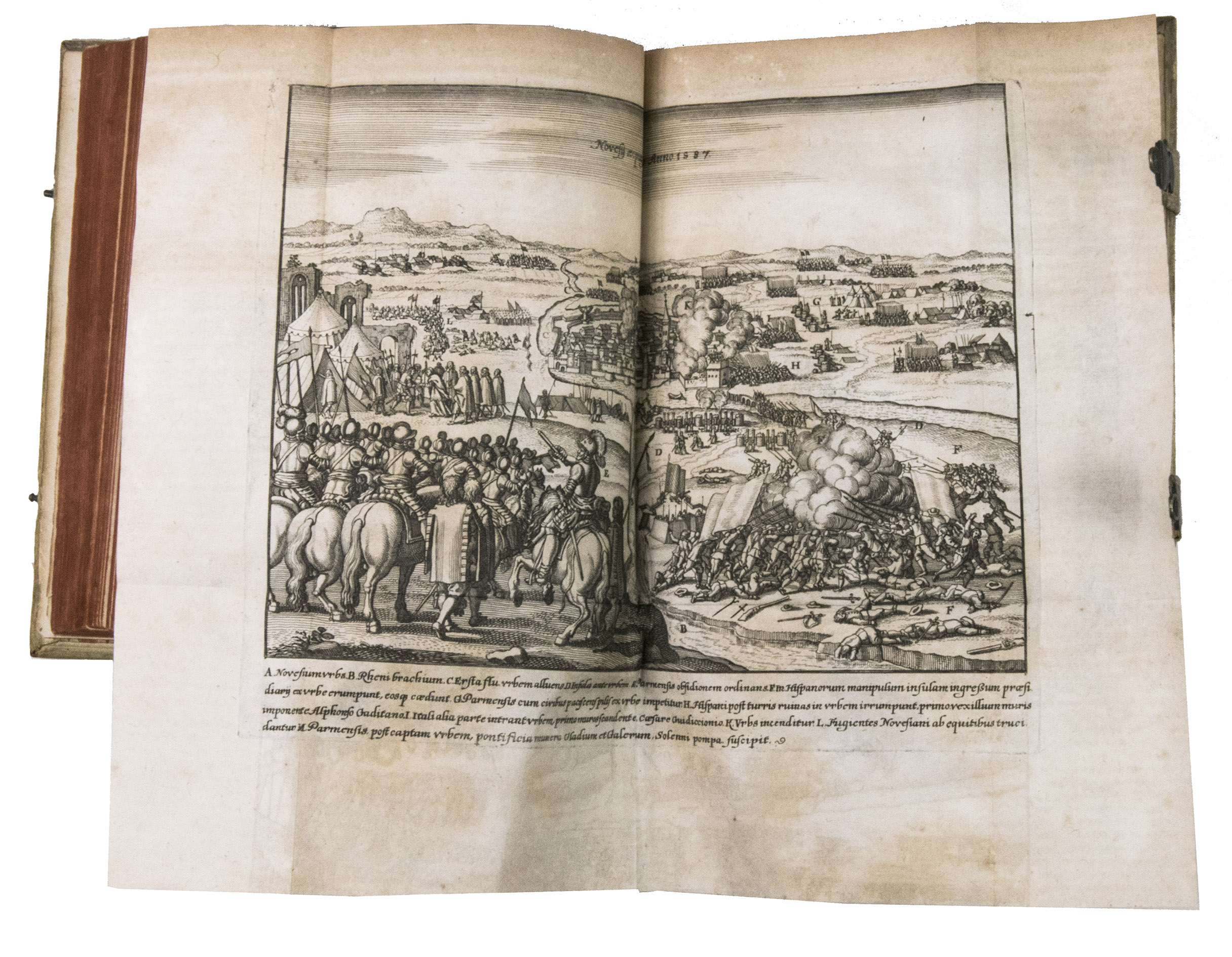 First Frankfurt edition of a history of the Dutch War of Independence from 1555 to 1590, the first edition to combine two earlier volumes into one. The Jesuit Famiano Strada (1572-1649) had composed this work at the request of Duke Ranuccio Farnese, whose father Alexander and grandmother Margaret had played an important part in the struggle. Starting with the abdication of Charles V as Holy Roman Emperor in 1555, whereby the Dutch provinces passed to his son Philip II of Spain. Strada ended his first volume with the death of the Spanish governor of the Netherlands, Don John of Austria, in 1578. The second volume describes the campaigns of Alexander Farnese from 1578, when he succeeded Don John to his departure from the Netherlands in 1590. Due to opposition by the Spanish court, a planned third volume was never published.