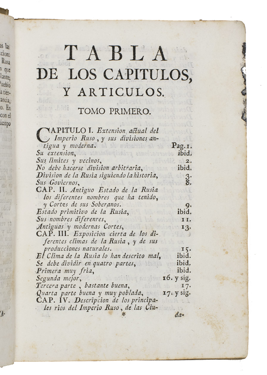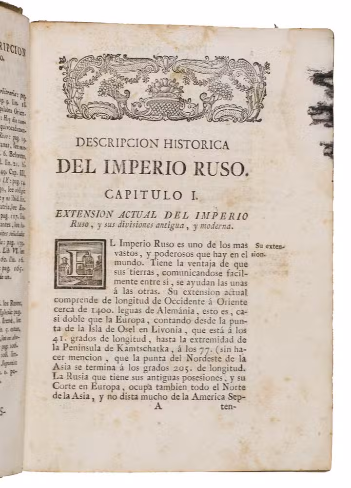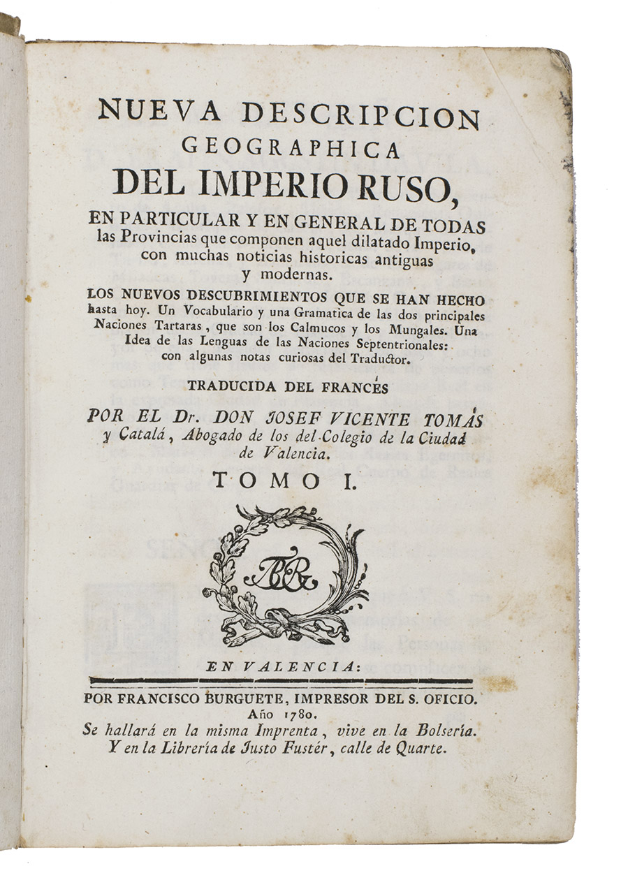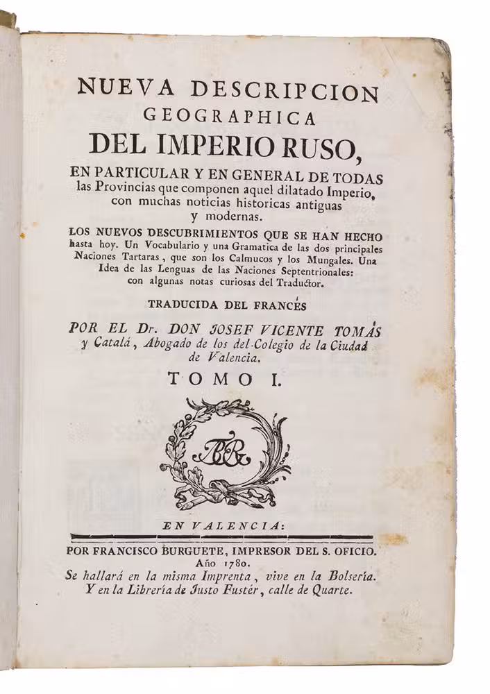 The first edition of the earliest Spanish publication featuring Russian exploration voyages. It is a relatively rare geographical work on Russia and Northern Asia. The book's title page mentions that the book has been translated from French, without specifying the source work. However, it's derived from the French edition of Strahlenberg's Das Nord-und Ostliche Theil von Europa und Asia (1730). This Spanish edition is expanded with subsequent Russian discoveries, marking the earliest Spanish reference to this significant exploration of Northern Asia. This edition contains the most significant Russian voyages of exploration and discovery in the eighteenth century (the early settling of Kamtschatka, Bering´s voyage, and others), up to the time of publication.