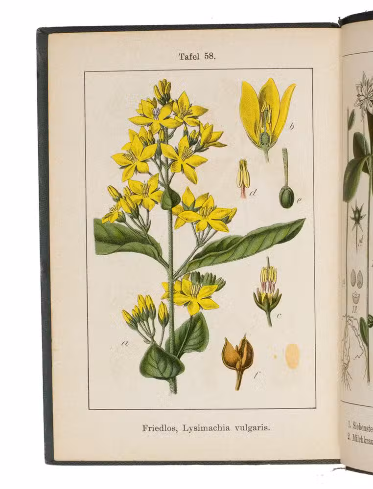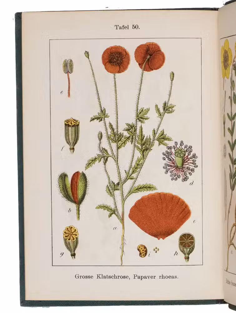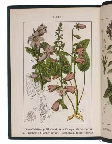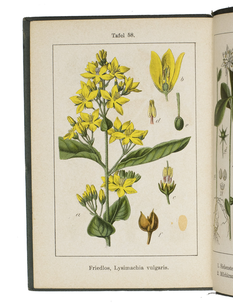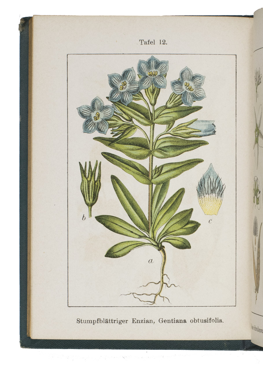Second, extensively revised edition of the phanerogams volumes of Flora von Deutschland by the German botanical artist and engraver Jacob Sturm (1771-1848), first published at Nürnberg in the years 1798-1862 (some bibliographies say 1855 or 1861) It comprised three parallel series with a total of 36 volumes (Arnold Arboretum and Bradley apparently missed one or two of the last volumes. The three series cover phanerogams (seed plants), cryptogams (spore plants) and fungi. The present second edition, rarely recorded in the literature, covers only the first series: phanerogams. It appeared as volumes 6-21 in the series Schriften der deutschen Lehrer-vereins für Naturkunde, and the text is almost entirely new. The German botanist Ernst Hans Ludwig Krause (1859-1942) seems to have been responsible for this edition and may have written the new text. Each volume describes a different category of seed plant (including trees, bushes and flowers). The 1st volume, for example, describes conifers and lilies, the 2nd and 3rd different kinds of gramineae, the 4th orchids and aquatic herbs and the 8th roses. The 15th volume is an index.
