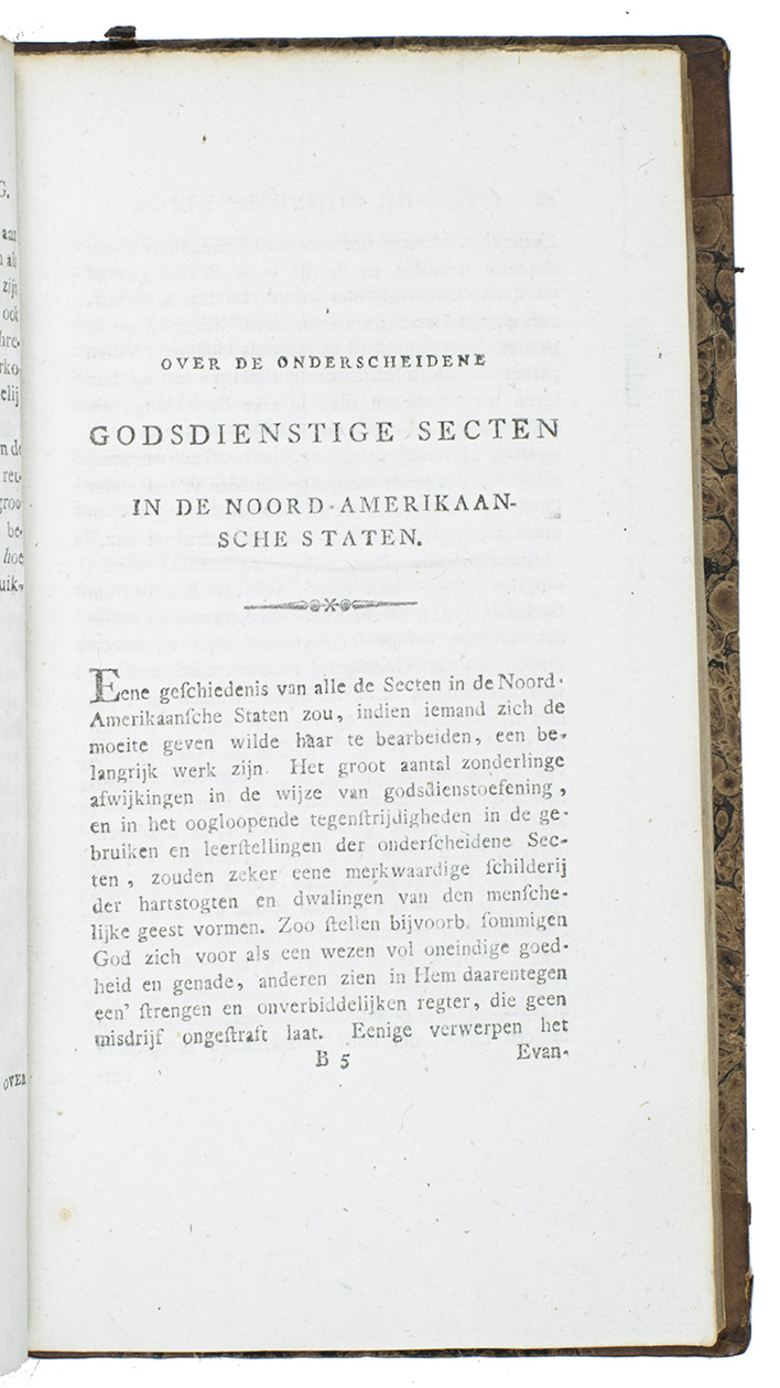 Very rare first and only edition of the only Dutch translation of a Russian description of the United States of America. The title-page notes that it is translated from the German translation (1816) and the preface notes that the first edition, in Russian, appeared in 1815. A second Russian edition appeared at St. Petersburg in 1818 and has sometimes been described as the first.