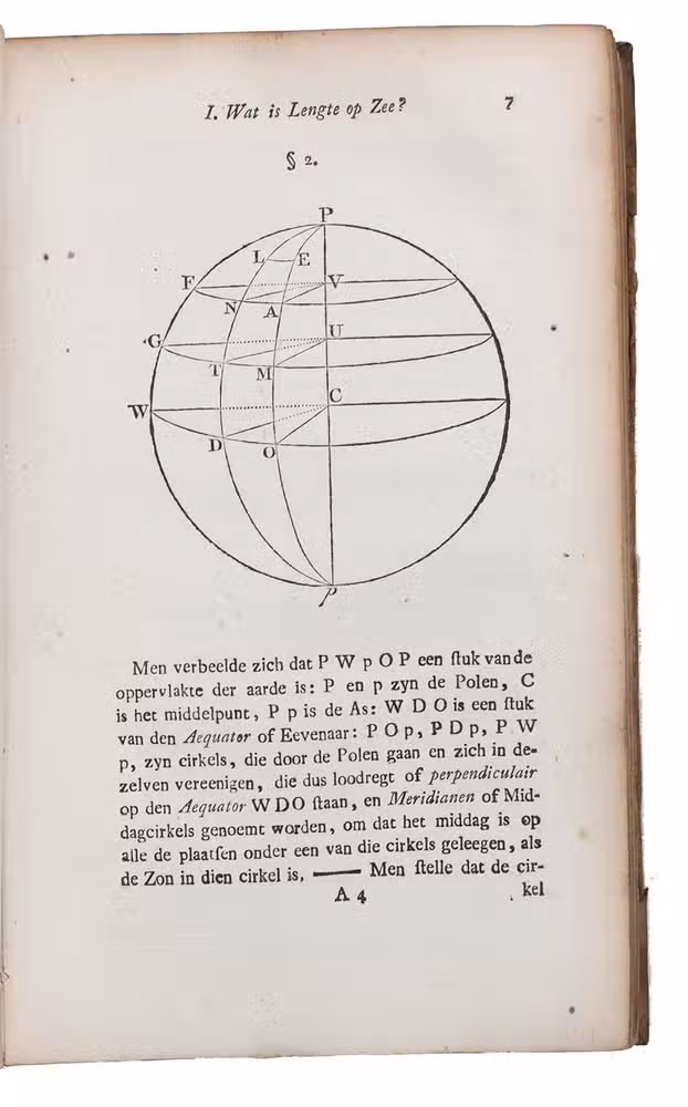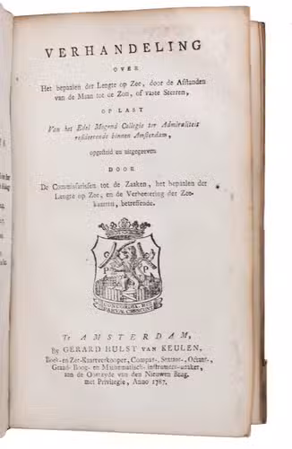 (2) Over het bepalen der lengte op zee door de afstanden van de maan tot de zon, of vaste sterren, ...(3) Van tafelen, ten dienste der zeelieden, en voor al ter bevordering van het bepaalen der lengte op zee, door de afstanden van de maan tot de zon, of de vaste sterren; ...
