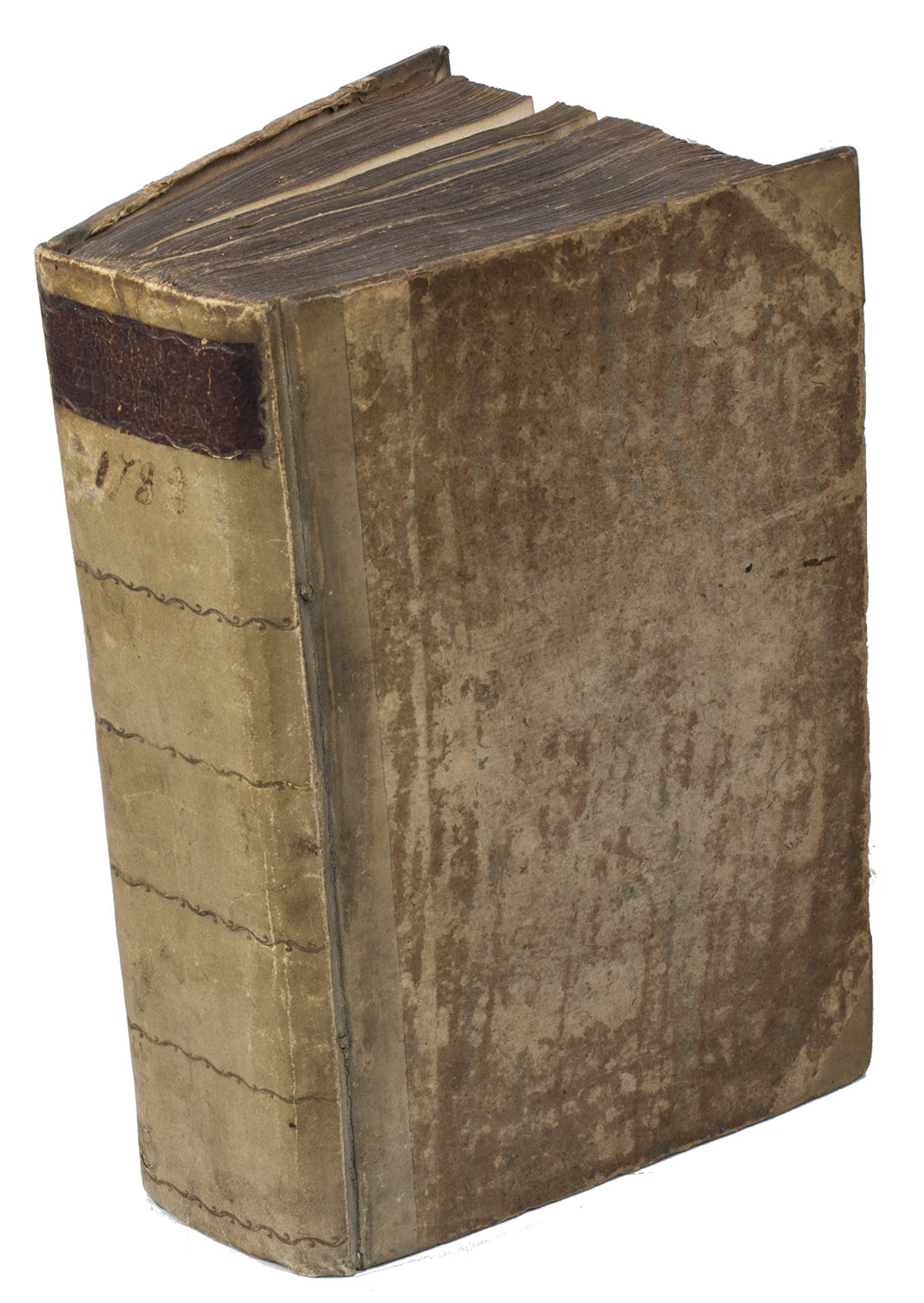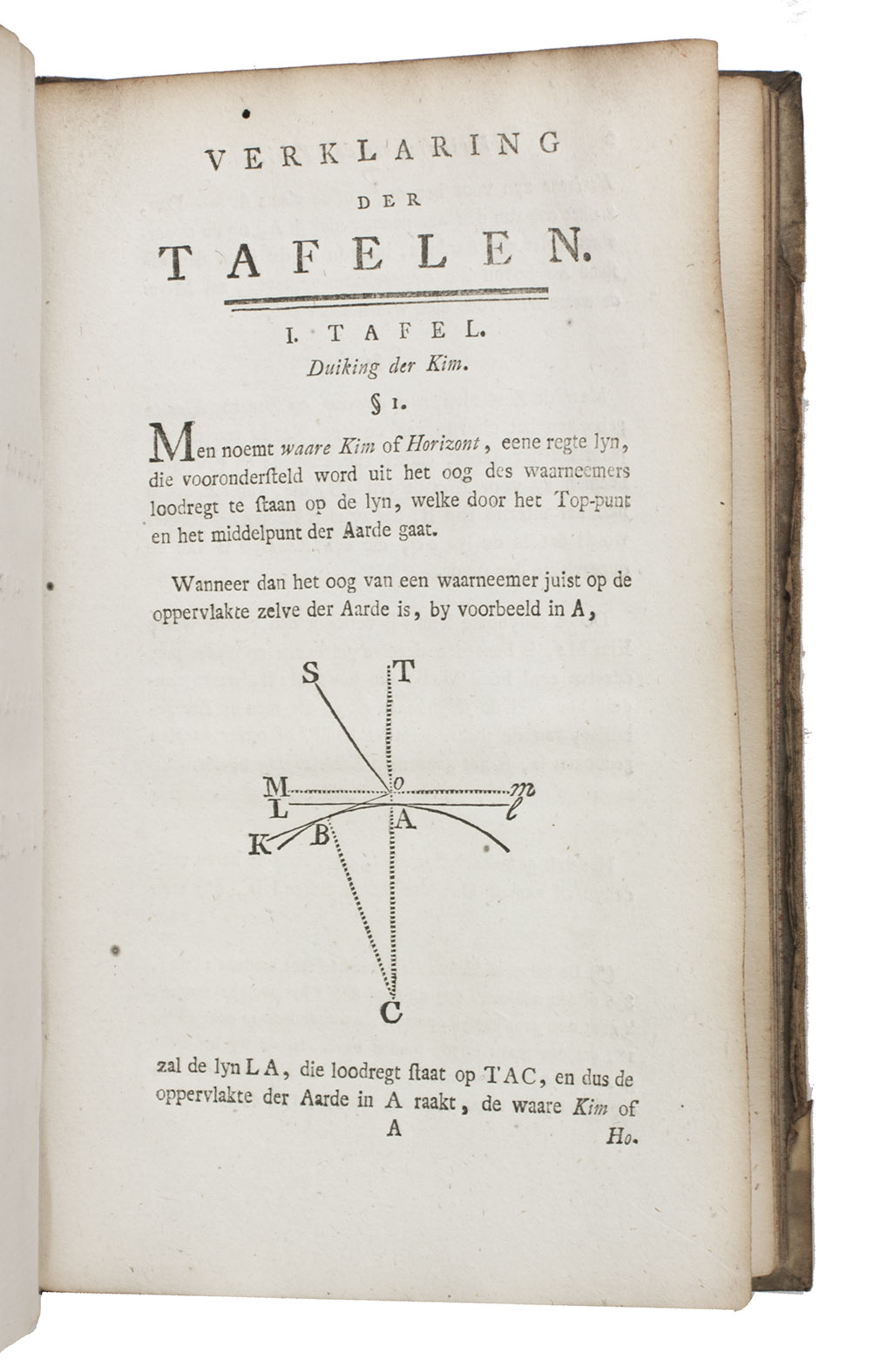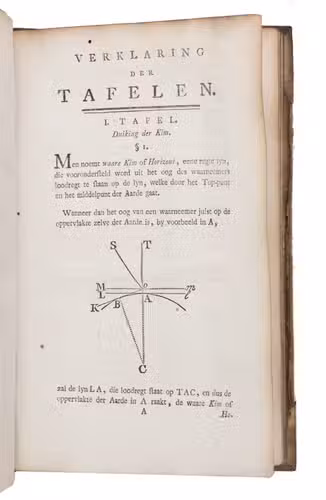 Amsterdam, Gerard Hulst van Keulen, 1787-1788. 3 parts in 1 volume. 8vo. With three title pages with woodcut printer's device, mathematical figures in the text, letterpress tables, and 4 large printed folding tables. Contemporary half vellum. XXX, 108, 87, [1]; XXIII, 136; [4], 30, [2], 60 pp.