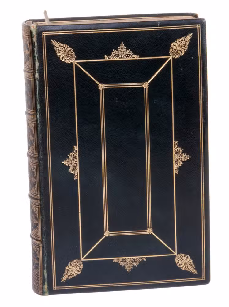 London, printed by James Moyes for Longman, Orme, Brown, Green, and Longmans, etc., 1849. 2 parts in 1 volume. 8vo. With an engraved portrait of the author. Contemporary gold-tooled black morocco, with the title lettered in gold on the spine, gilt and gauffered edges, marbled endpapers, gold-tooled board edges and turn-ins, a blue silk reading ribbon. xvi, 573, [1 blank] pp.