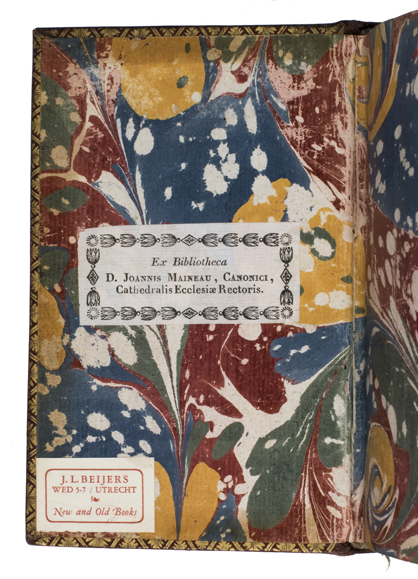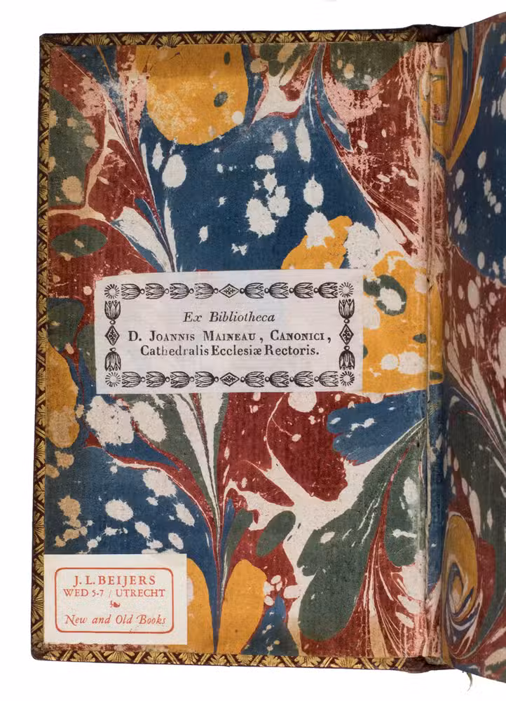 With 2 bookplates mounted on the first endpaper, the first ("Ex Bibliotheca D. Joannis Maineau, Canonici, Cathedralis Ecclesiae Rectoris"), the second ("J.L. Beijers wed 5-7 / Utrecht New and Old Books"). The work is slightly browned throughout. Otherwise in very good condition. Nijhoff & Kronenberg 2001; Swedish Booty of Books, SJ 1025; STCV 12927789 (2 copies); USTC 404030; WorldCat 1154432502 (8 copies).