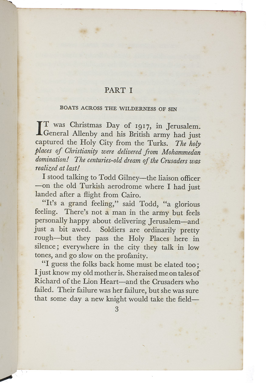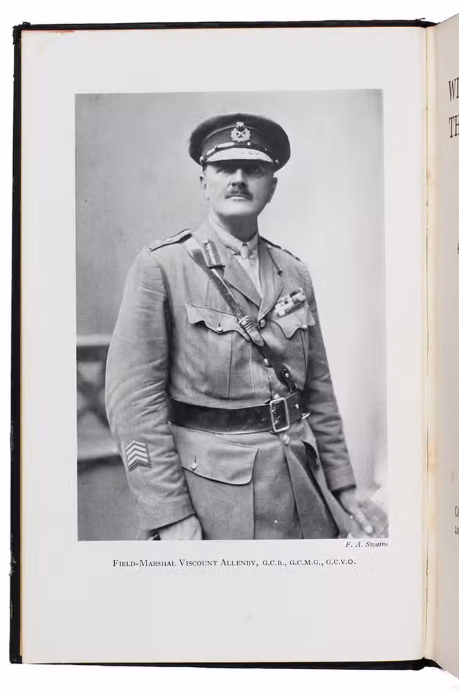 London, Toronto, Melbourne and Sydney, Cassell and Company Ltd., [1938]. 8vo. With a half-tone photographed portrait of Allenby (signed F.A. Swaine) as a frontispiece. Original publisher's black cloth, with the title in red on the spine and the head edge red. [6], 202 pp.