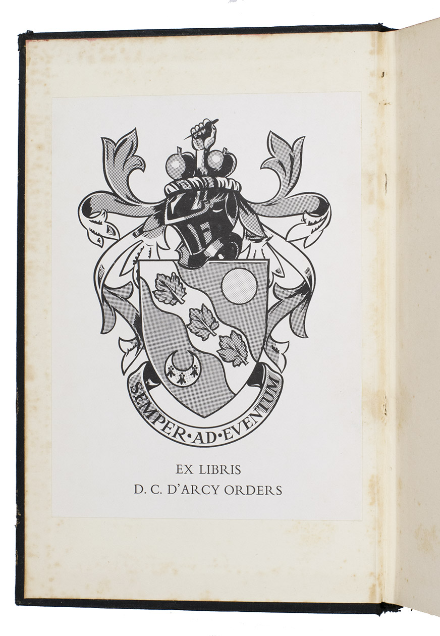 With the large ex libris bookplate of D.C. D'Arcy Orders (a black-and-white printed helmed coat-of-arms) on the front paste-down and a small black stamp in the upper outer corner of the first flyleaf: "D'Arcy". The binding shows minor signs of wear, mainly around the head and foot of the spine and the corners of the board, somewhat foxed throughout. Otherwise in good condition. O'Brien F1045.