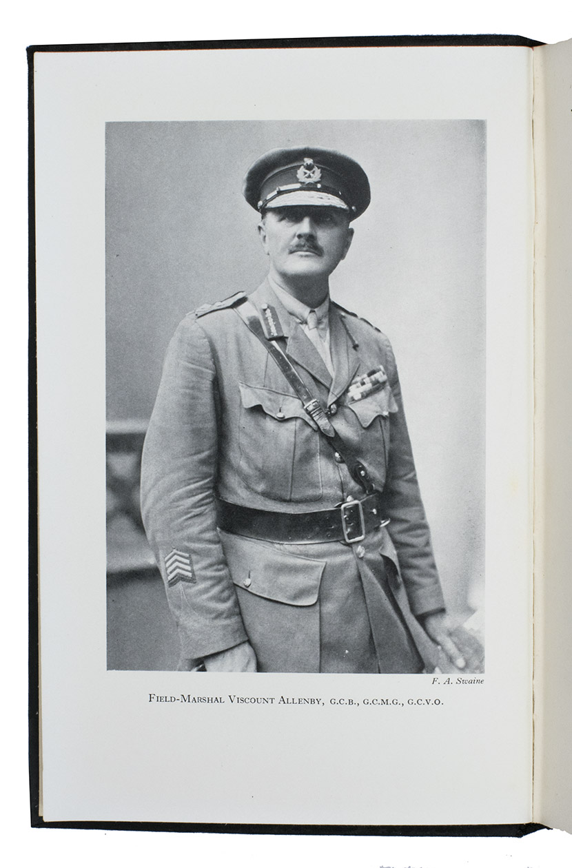 London, Toronto, Melbourne and Sydney, Cassell and Company Ltd., [1938]. 8vo. With a half-tone photographed portrait of Allenby (signed F.A. Swaine) as a frontispiece. Original publisher's black cloth. [6], 202 pp.