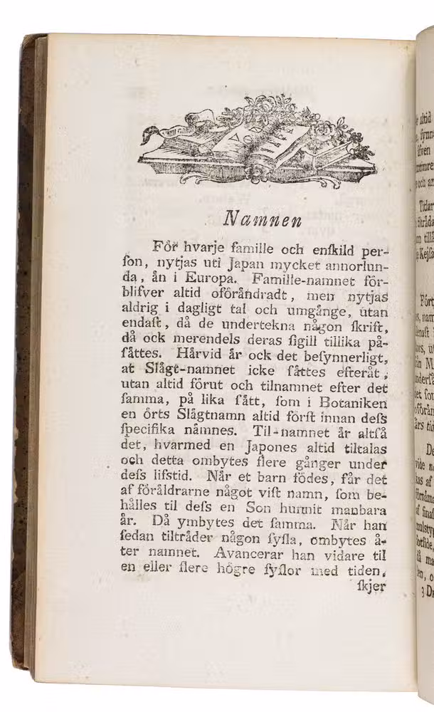 The edges and corners of the boards are somewhat scuffed, the spines and boards show signs of use, with tears at the head and foot of the spine, and some loss of material at the foot of the spine of volumes 1 and 2. The illustration on page 1 of volume 1 has been pasted onto the page, as usual, the edges of the leaves are (unevenly) browned, but the volumes are internally mostly clean, with repaired holes in the outer margins of some of the leaves at the start of volume 3, affecting a few letters of the dedication. Otherwise in good condition. Alt-Japan-Katalog 1506; Cordier, Japonica, col. 445; Landwehr, VOC, 339; Pritzel 9259; Stafleu & Cowan 14.357; cf. DSB XIII, pp. 391-393; Howgego, Exploration to 1800, T38; Mendelsohn II, pp. 499-500 (English ed.); Stafleu, Linnaeus and the Linnaeans, pp. 153-155.