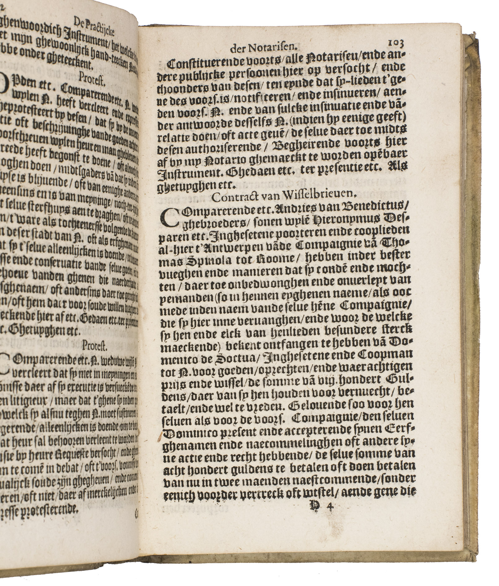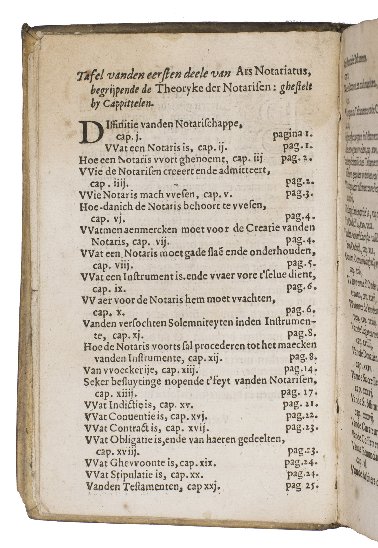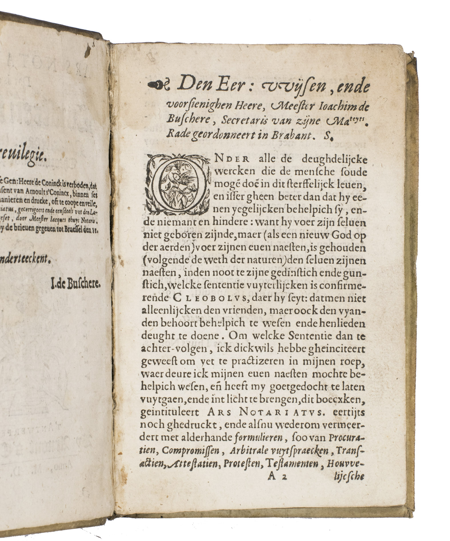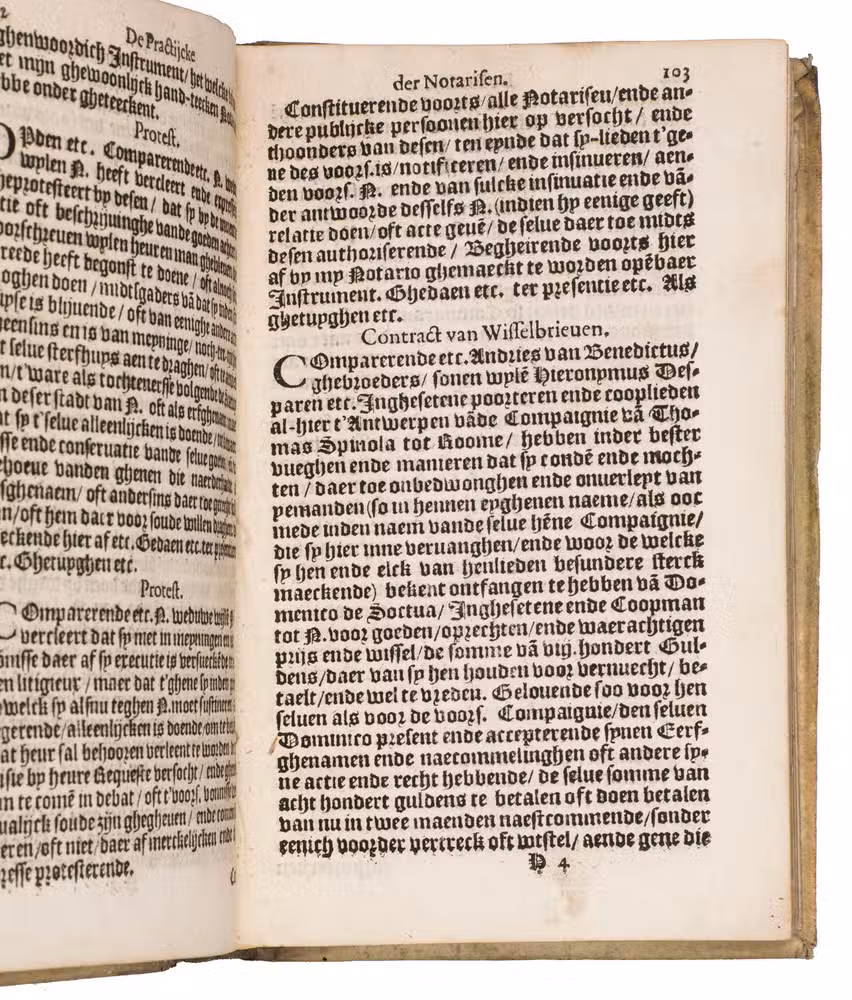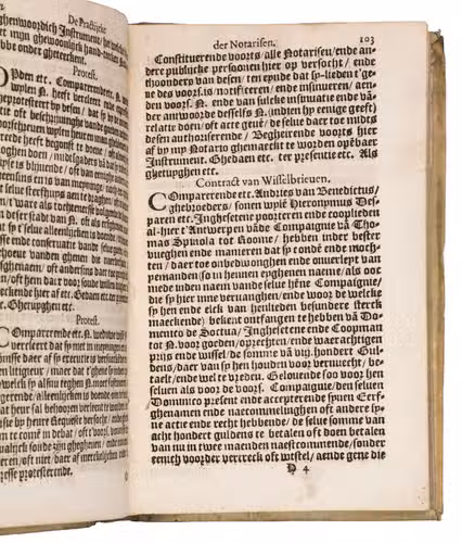 Owner's stamp on title-page: "Francois Rosset[?] A ...obern[?]". The title-page, slightly damaged and soiled but with no loss, has been reattached, but the book is otherwise in good condition. Binding rubbed. Belg. Typ 4529; Carter & Vervliet 258; Dekkers, Bibl. belgica juridica, p. 170; Machiels T226; Pitlo & Gehlen, De zeventiende en achtiende eeuwse notarisboeken (2004), pp.. 9-13; KVK & WorldCat (2 copies); Picarta (2 copies); UniCat (2 copies); USTC (3 copies); cf. Typ. Batava 321-323 (Delft eds.).
