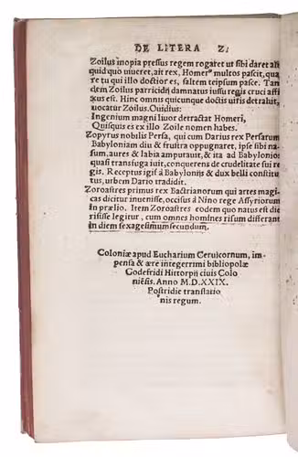 Ad 1: A rare 1529 Cologne edition, in the original Latin, of the most important and influential early encyclopaedia or dictionary of classical history, geography and mythology, including the authors preface to the first edition of 1498. It gives concise accounts, ranging from one line to more than half a page, of people, mythological figures, regions, cities, mountains, rivers, objects, etc. from classical times, gathered mainly from classical literature and arranged in alphabetical order.