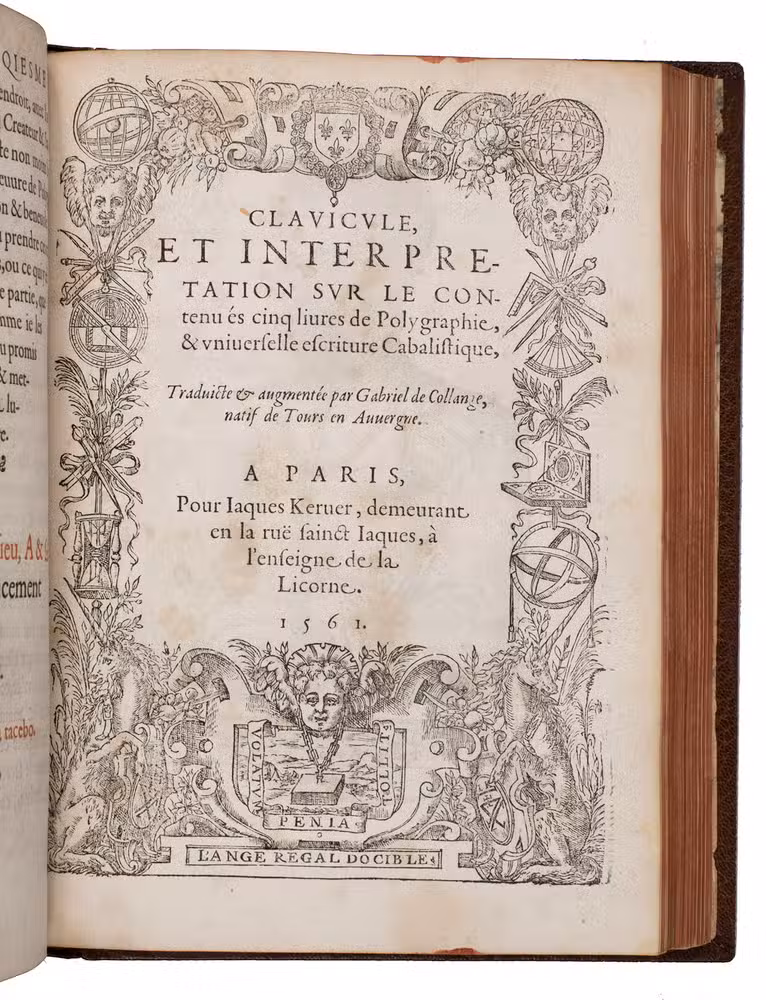(2) TRITHEMIUS, Johannes and Gabriel de COLLANGE (translator). Clavicule, et interpretation sur le contenués cinq livres de Polygraphie, & universelle escriture Cabalistique.