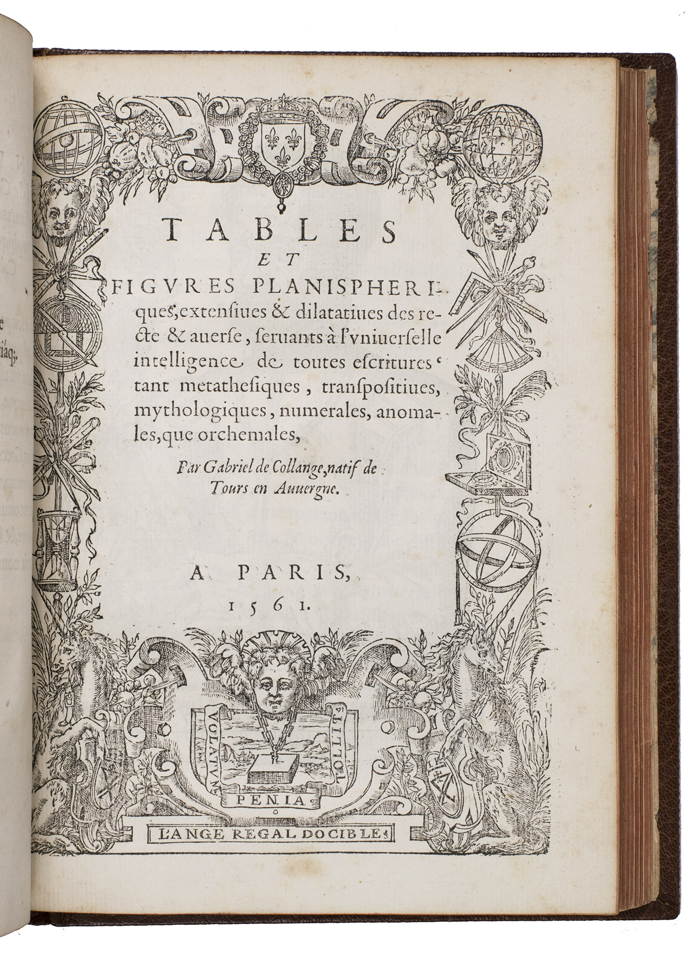 (3) COLLANGE, Gabriel de. Tables et figures planispheriques, extensives & dilatatives des recte & averse, servants à l'universelle intelligence de toutes escritures tant methathesiques, transpositives, mythologiques, numerales, anomales, que orchemales.