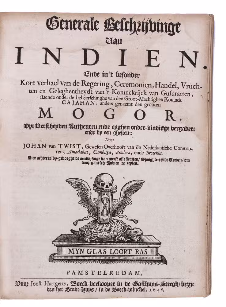 Generale beschrijvinghe van Indien. Ende in 't besonder kort verhaal van de regering, ceremonien, handel, vruchten en geleghentheydt van 't Koninckrijck van Gusuratten, staende onder de beheerschinghe van den Groot-Machtighen Koninck Cajahan: anders genaemt den grooten Mogor ... Hier achter is by-gevoeght de aenwijsinge van meest alle kusten, drooghten ende reeden, om door gantsch Indien te zeylen.