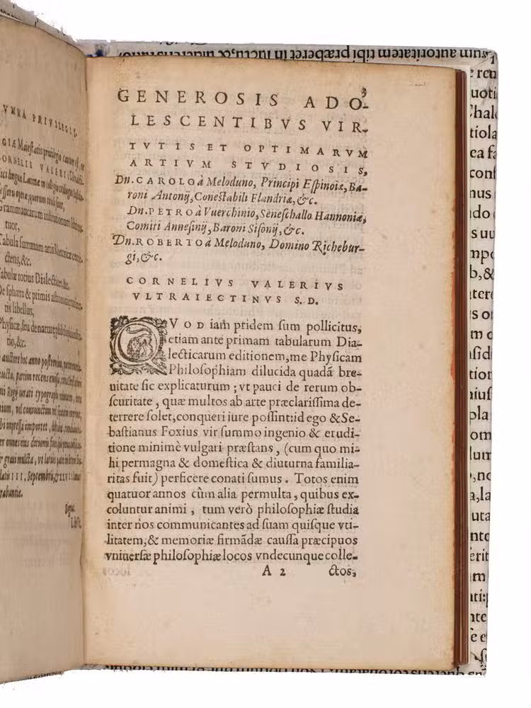 Ordained as a priest, Valerius combined deep personal piety with intellectual generosity and a lifelong devotion to teaching. Among his pupils were some of the most eminent scholars of the age, including Justus Lipsius (1547-1606), Theodorus Canter (1546-1617), Martinus Antonius Delrio (1551-1608), and Andreas Schottus (1552-1629).