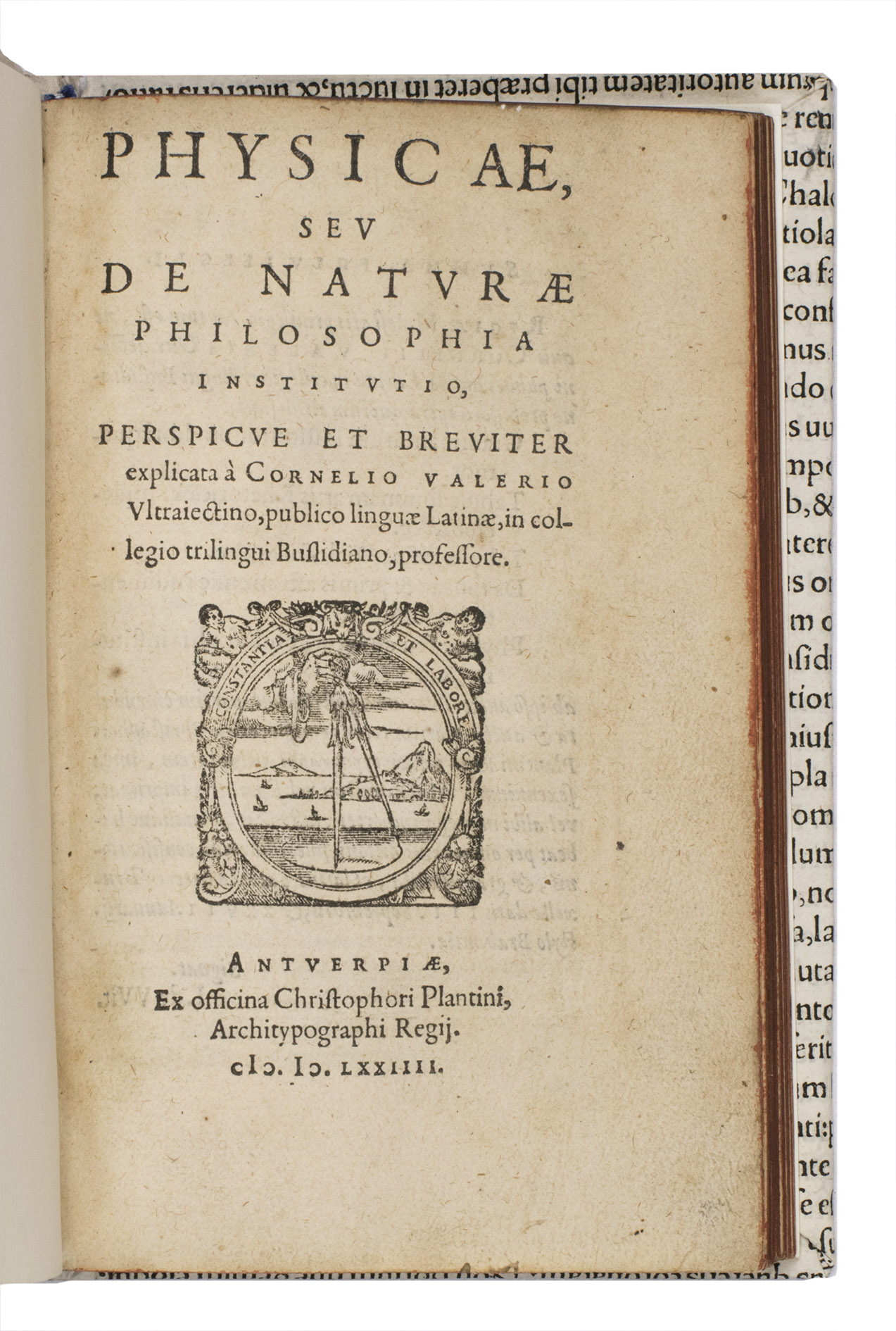 Early edition of an influential compendium of natural philosophy, first published in 1567 and reprinted ca. 15 times between 1568 and 1598. The present 1574 edition testifies to the works continued popularity at both Catholic and Protestant universities.