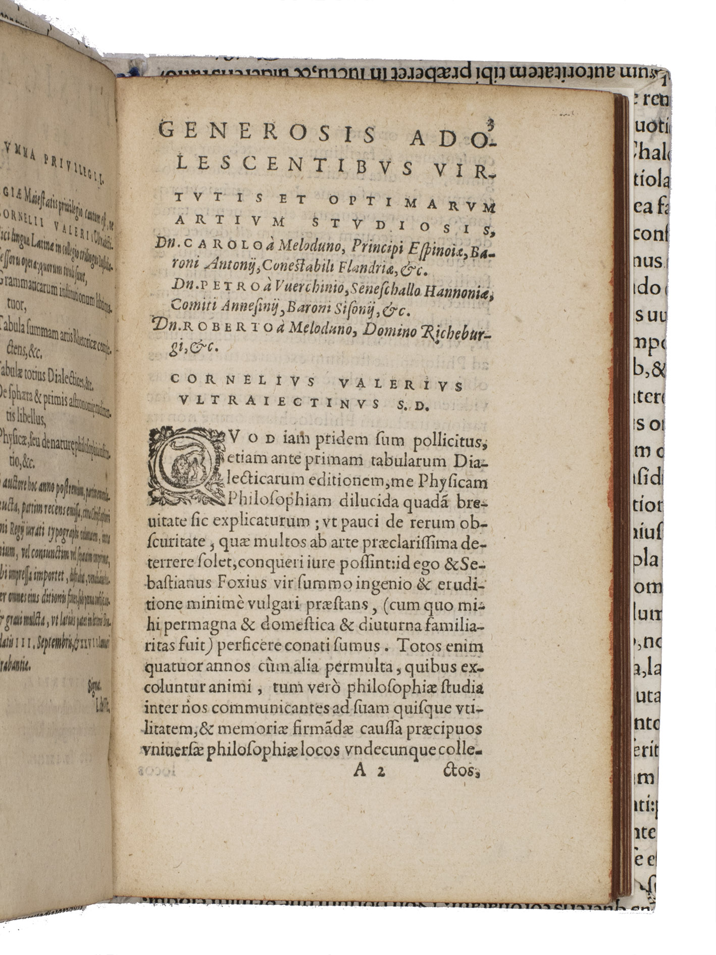 The author, Cornelius Valerius (ca. 1512-1578), was born in Oudewater, near Utrecht, hence his frequent toponym Ultrajectinus. Educated under the celebrated schoolmaster Georgius Macropedius, and a pupil of figures such as Goclenius and Rescius, Valerius rose from modest beginnings to become one of Louvains most respected humanist teachers. In 1557, he succeeded Petrus Nannius (1496-1557) as Professor of Latin at the renowned Collegium Trilingue (Busleyden College).