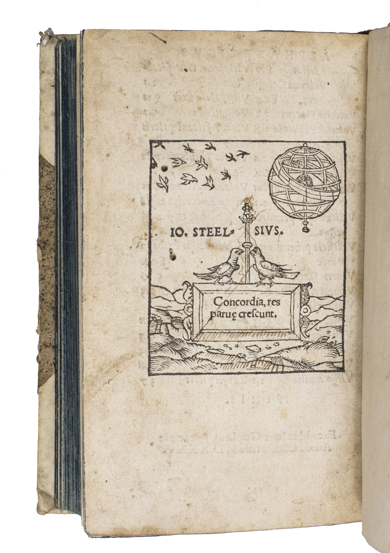 Antwerp, Joannes Grapheus for Joannes Steelsius, 1535. 8vo (14.6 x 9.1 cm). With a woodcut title frame, and a woodcut illustration incorporating Steelsius' device at the end. Old half vellum. 237, [11] ll.