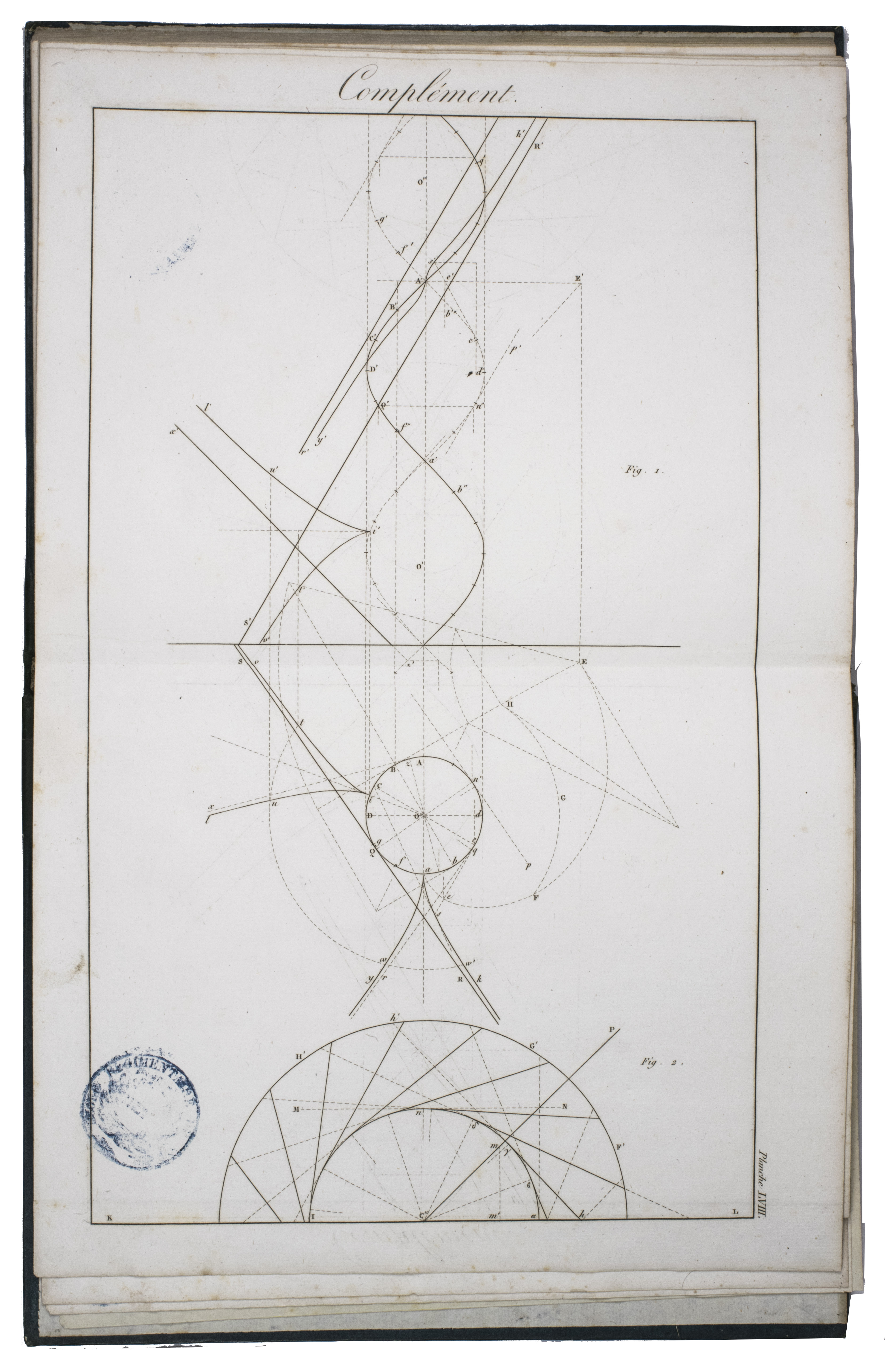 With the bookplate of the "Bibliothèque de l'École Régimentaire du Génie" mounted on the front pastedown of both volumes, the library stamp of the "Ecole des Mineurs et Sapeurs. Corps Royal du Genie" of Metz on the title page of both volumes and in the lower outer corner of all the plates, 2 later stamps of the "Kaiserliche Fortification zu Metz" on the first flyleaves of both volumes, an annotation ("Mit titelbild") and number ("568") on the title page of the text volume. The boards are somewhat rubbed, the lower outer corner of the front board of the text volume is bumped. The leaves and plates are lightly foxed. Otherwise in good condition. Poggendorff II, 1168; Vagnetti FIb31; cf. Kemp, p. 231.