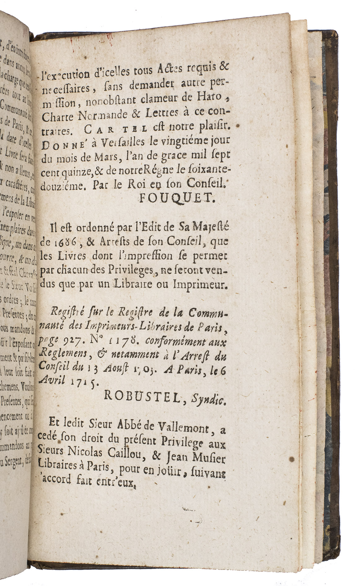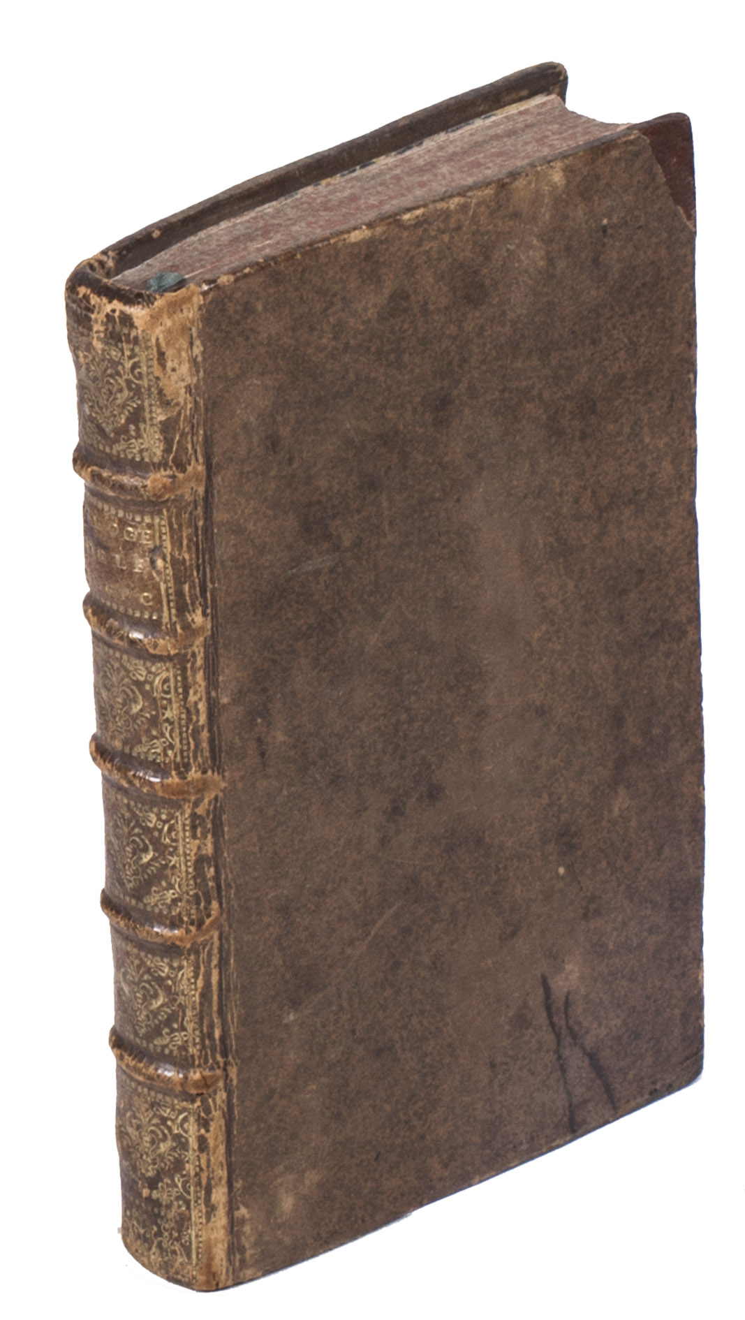 Paris, Nicolas Caillou and Jean Musier, 1715. Small 8vo (ca. 16 x 10 cm). With an engraved frontispiece, an engraved headpiece, a woodcut headpiece, and two decorated woodcut initials.Contemporary gold-tooled mottled brown calf, with the title lettered in gold on the spine, gold-tooled board edges, marbled edges, marbled endpapers. [8], 223, [4], [5 blank] pp.