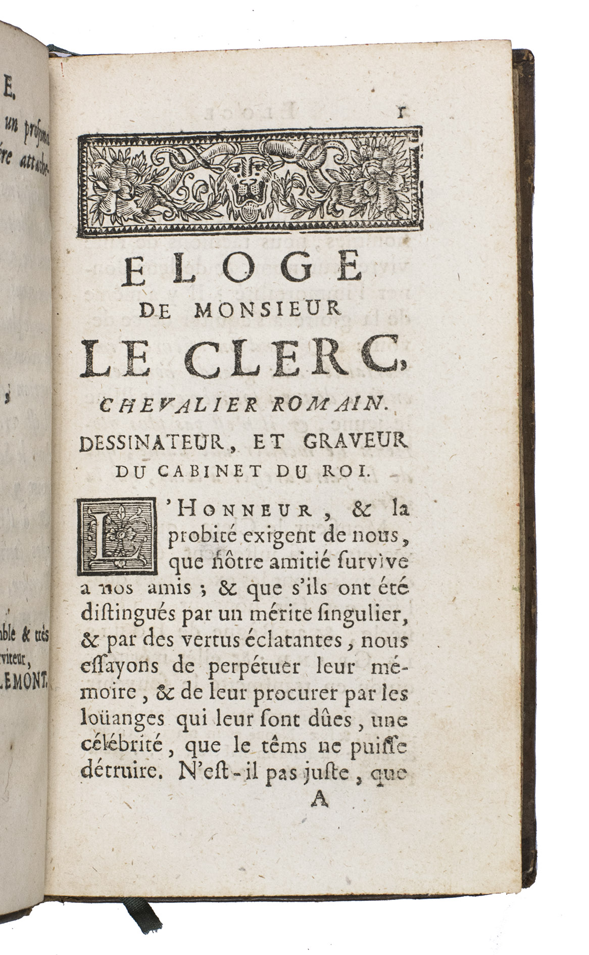 Eloge de Mr. Le Clerc, chevalier romain, dessinateur, et graveur ordinair du cabinet du roi: avec le catalogue de ses ouvrages; Et des réflexions sur quelques-uns des principaux.