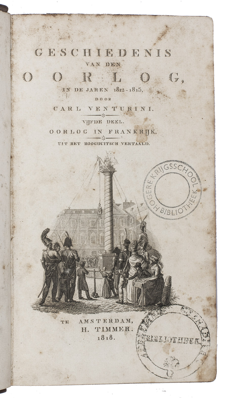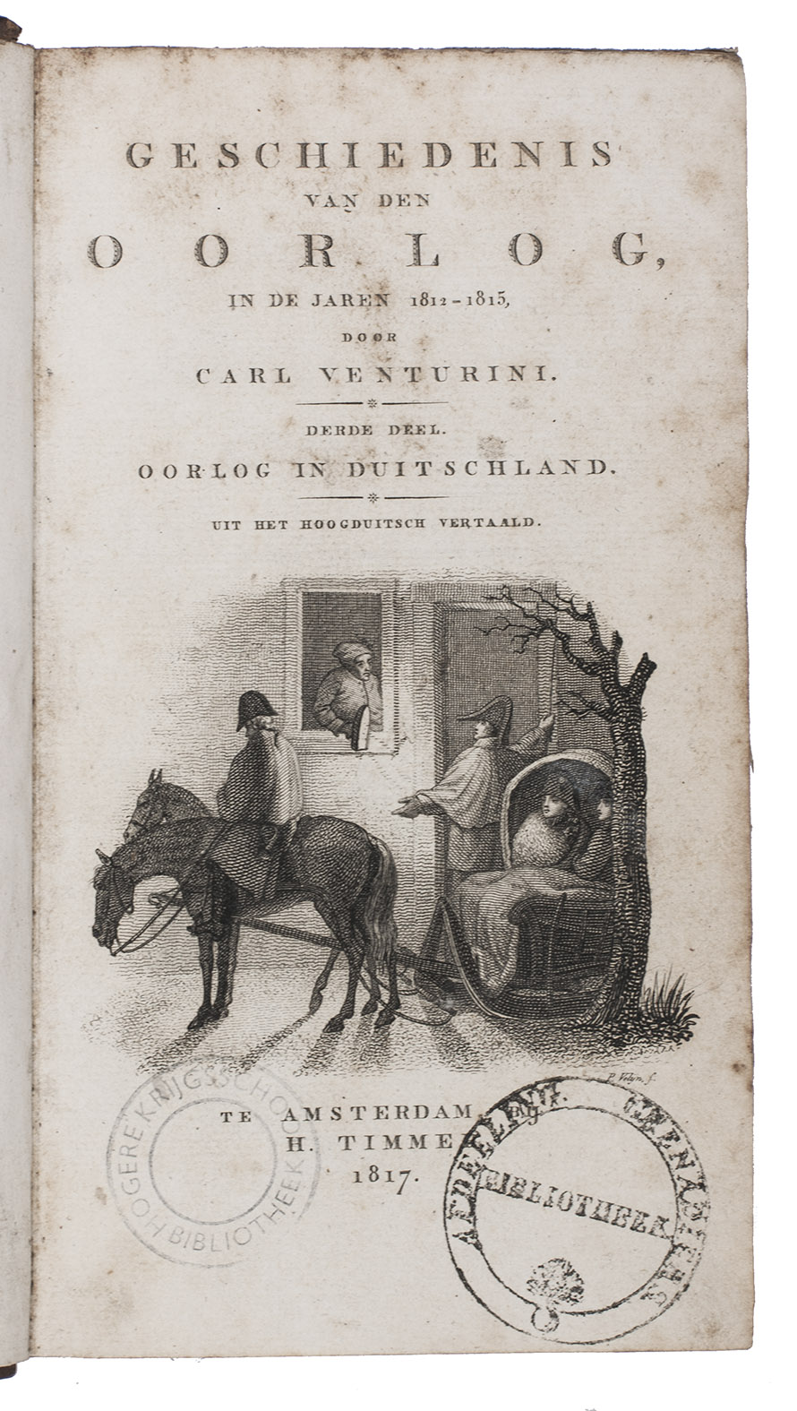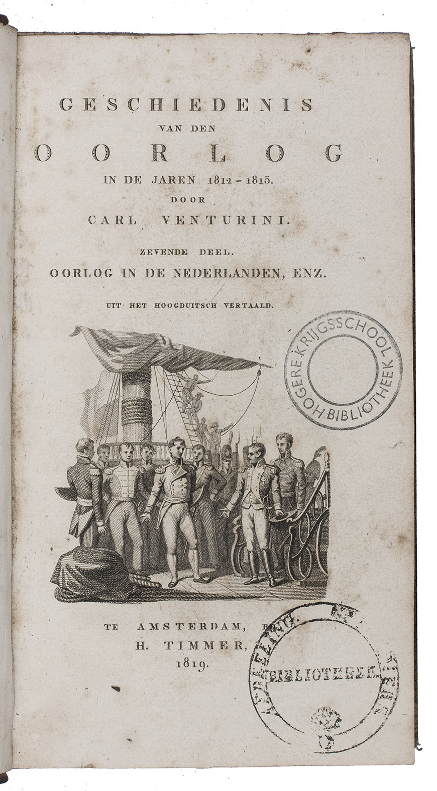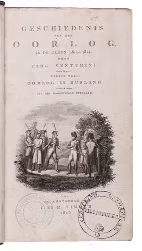 First and only Dutch edition of an important historical work on the Napoleonic wars in Russia, Germany, France and the Netherlands during the years 1812-1815, translated by Martinus Gerardus Engelman (1772-1823) after the first edition in the original German Russlands und Deutschlands Befreiungskriege von der Franzosen-Herrschaft unter Napoleon Buonaparte in den Jahren 1812-1815 (Leipzig, 1816-1819), by Karl Heinrich Georg Venturini (1768-1849), a German theologian who wrote many theological and historical works.