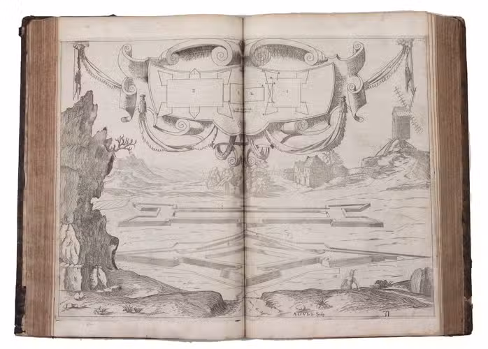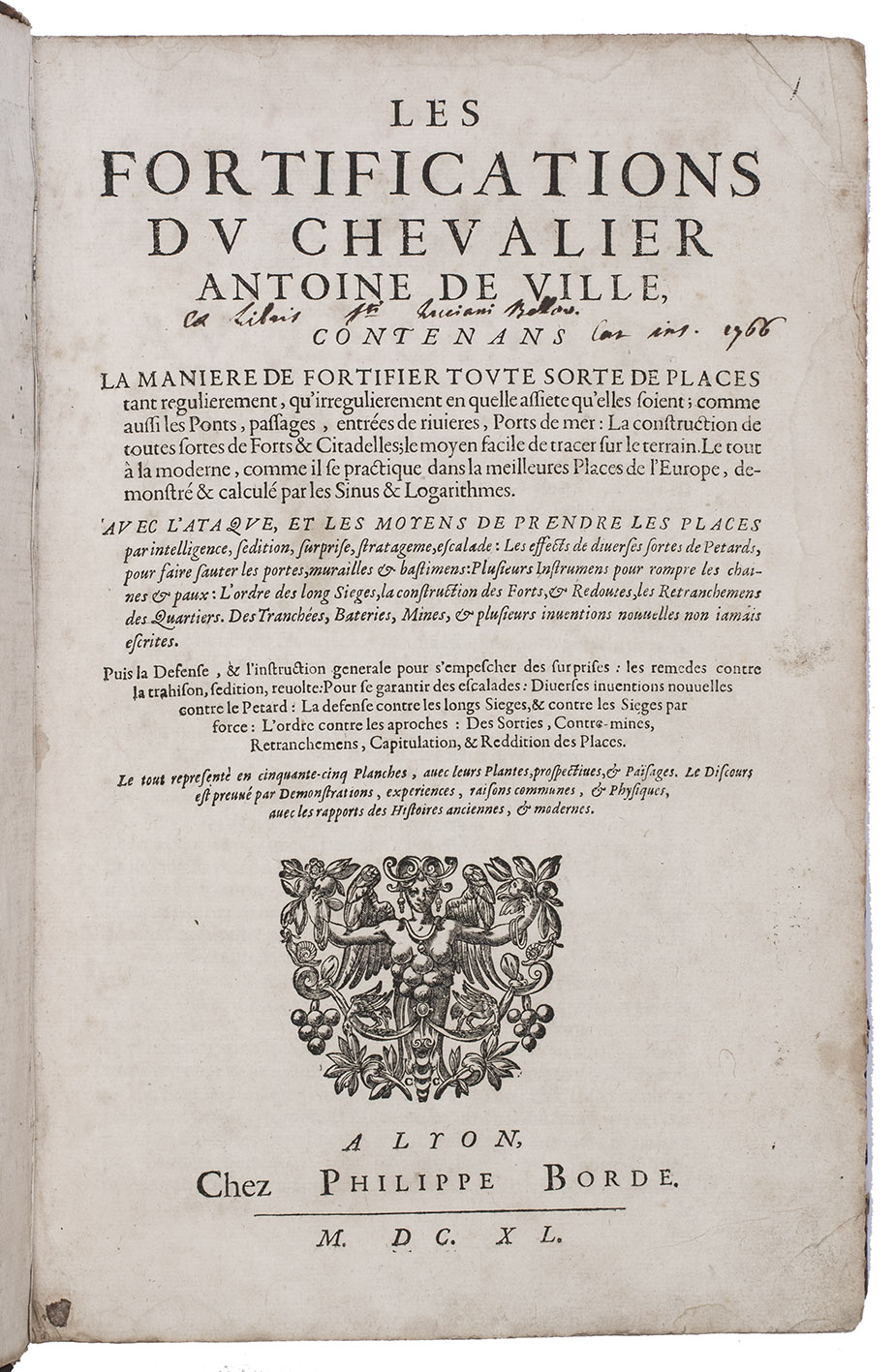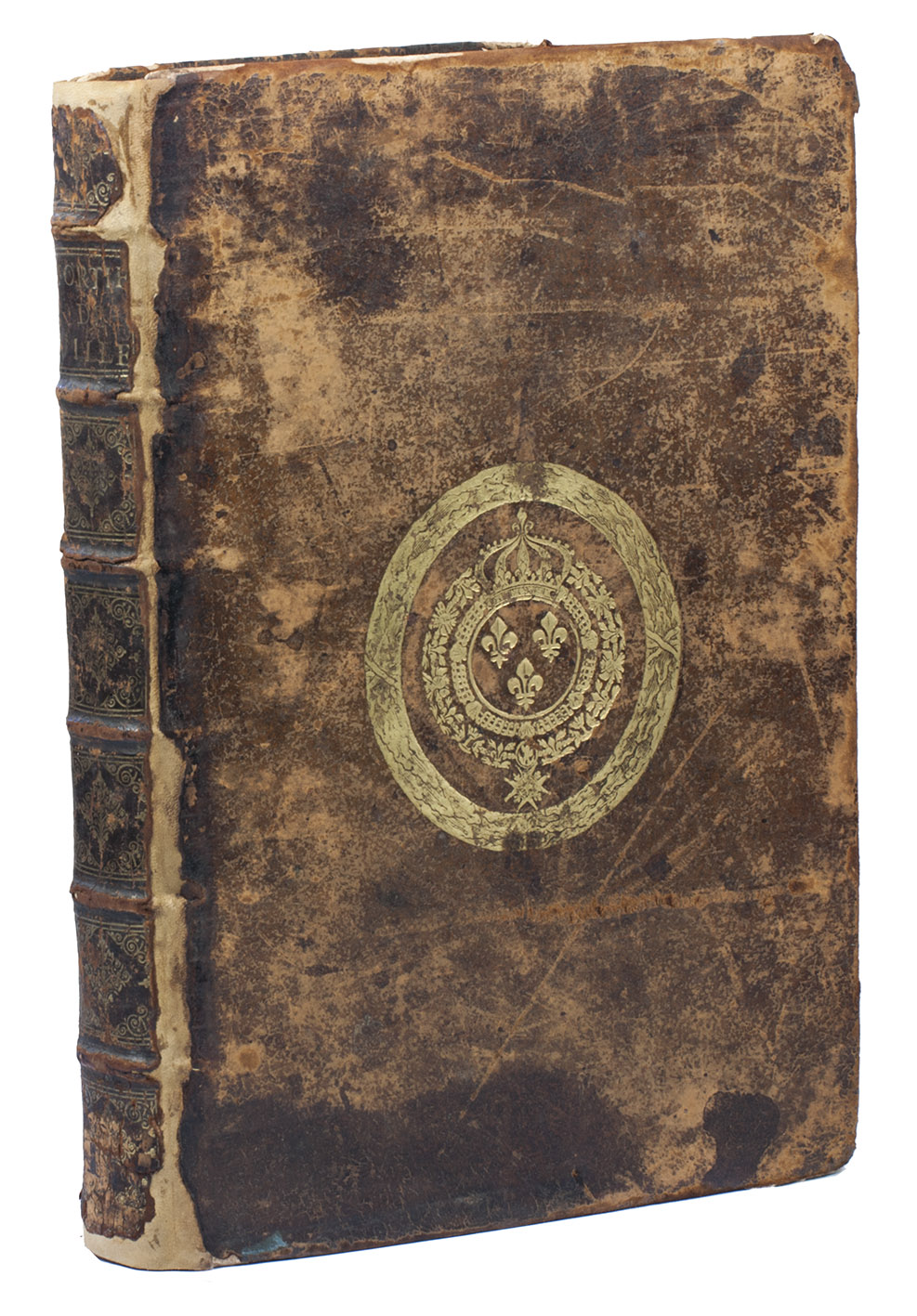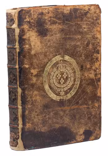 Lyon, Philippe Borde, 1640 (engraved title-page 1641). With an engraved title-page, engraved portrait of the author, 53 numbered engravings (10 double-page. Later 17th-century gold-tooled calf, each board with the French royal arms, gold-tooled spine. Rebacked, with the original backstrip laid down. Engraved title + [10], 441, [1 blank], [12] pp. plus 9 engravings not counted in the pagination.