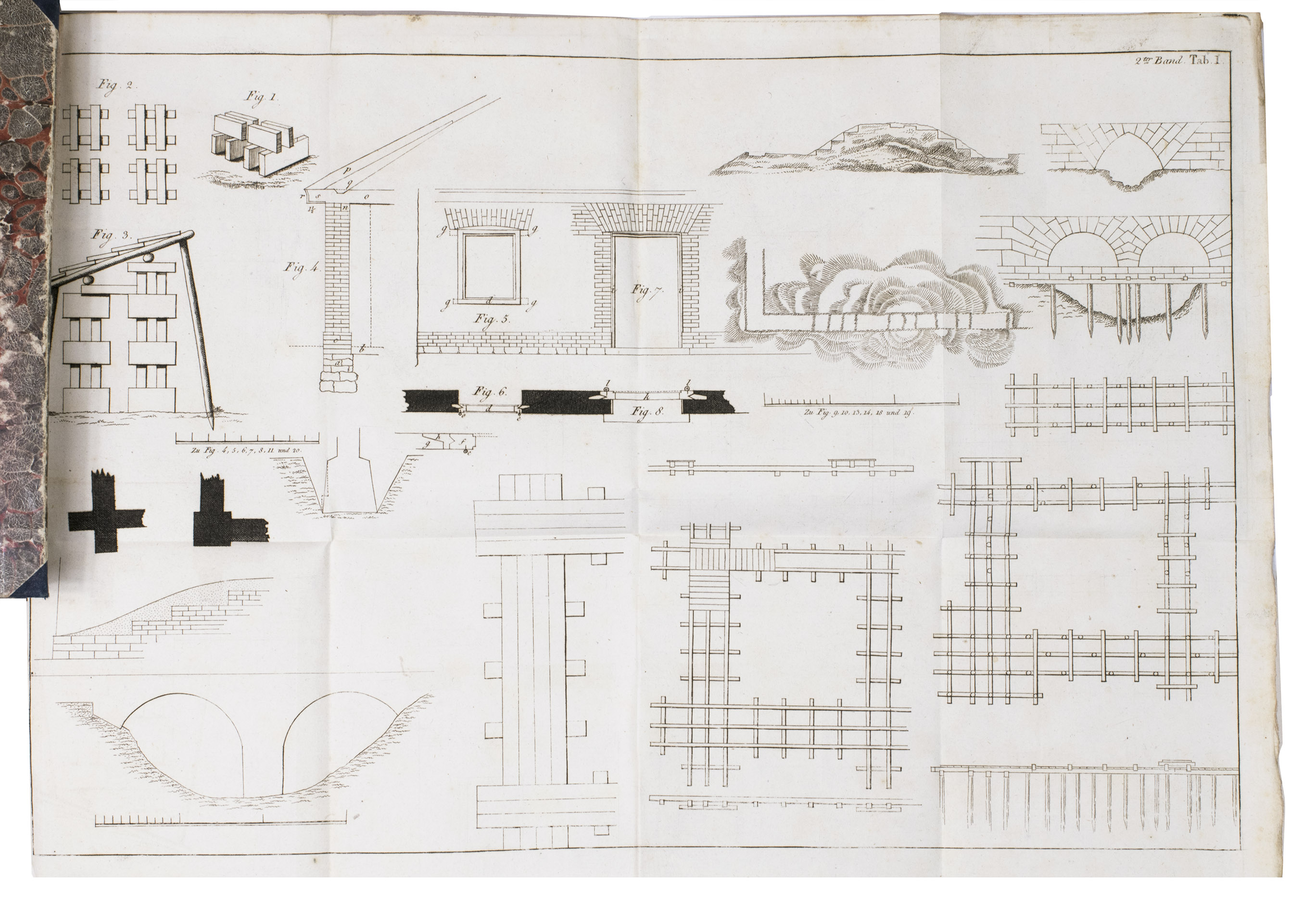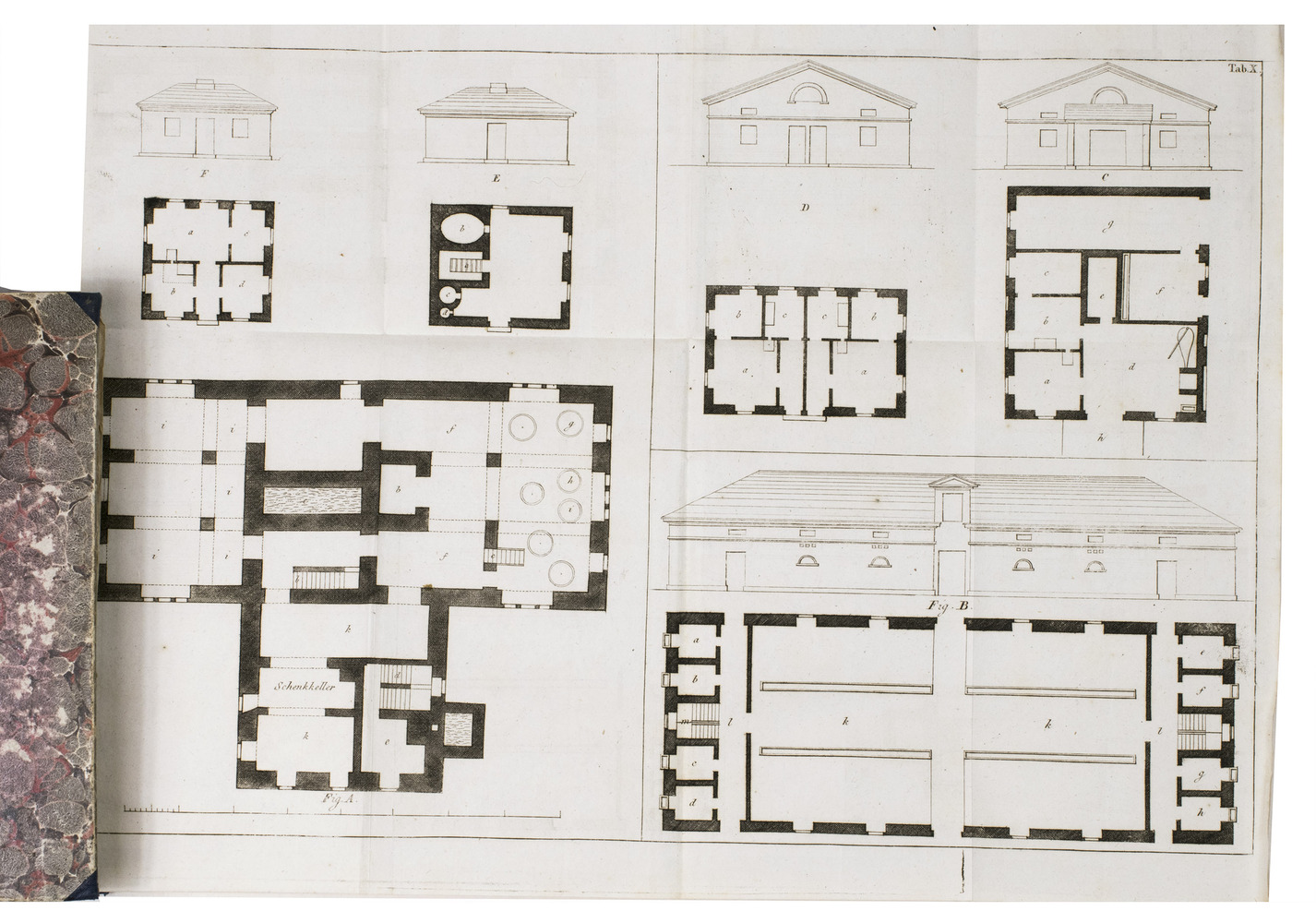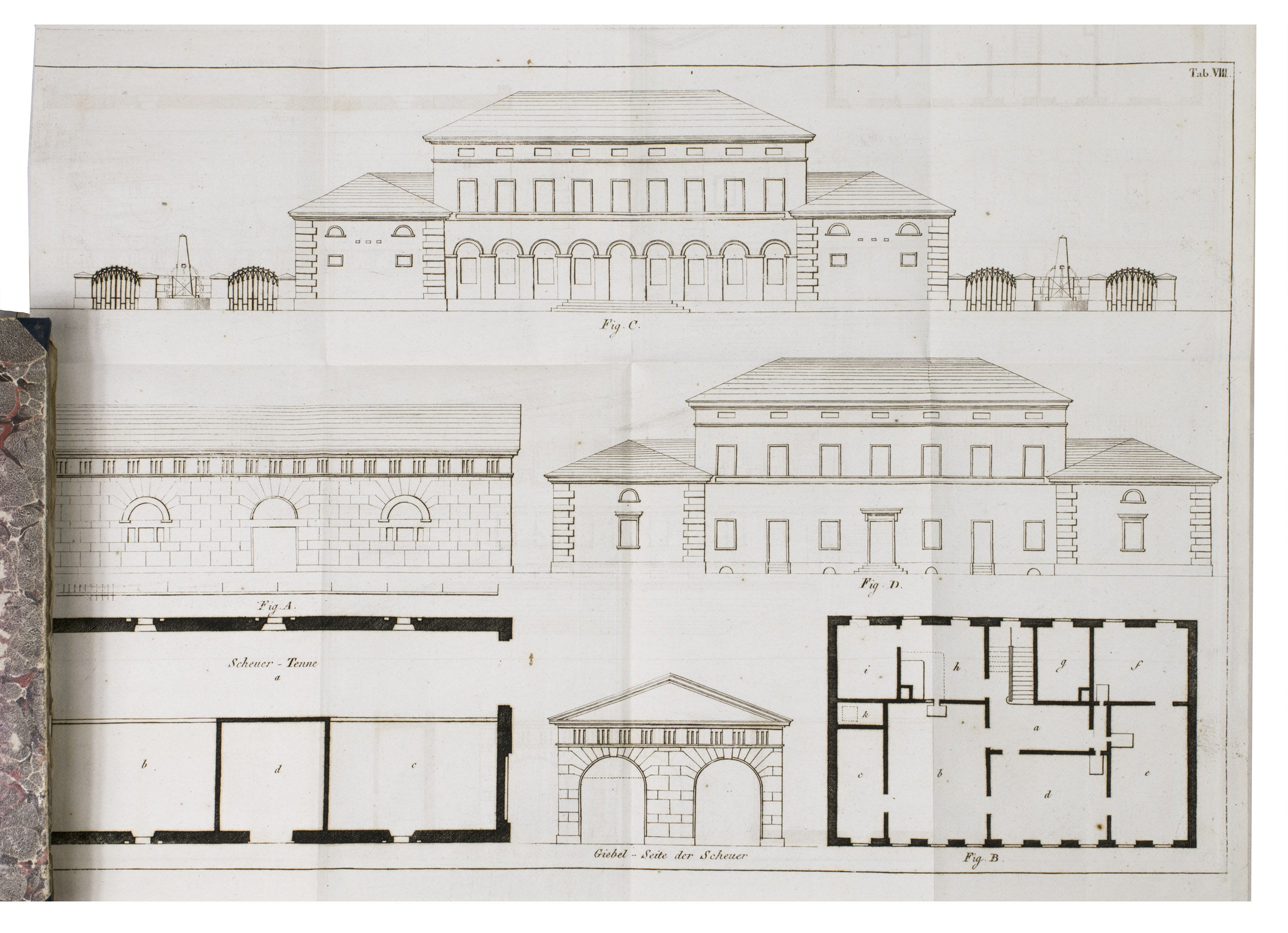 Augsburg, Von Jenisch und Stagesche Verlagshandlung, 1840. 2 volumes. With numerous illustrations and figures of detailed construction-plans of all sorts of farm buildings on 20 large folding engraved plates. Contemporary half blue decorative cloth, marbled paper sides, gold-stamped spines. XVIII, 292; X, 294 pp.