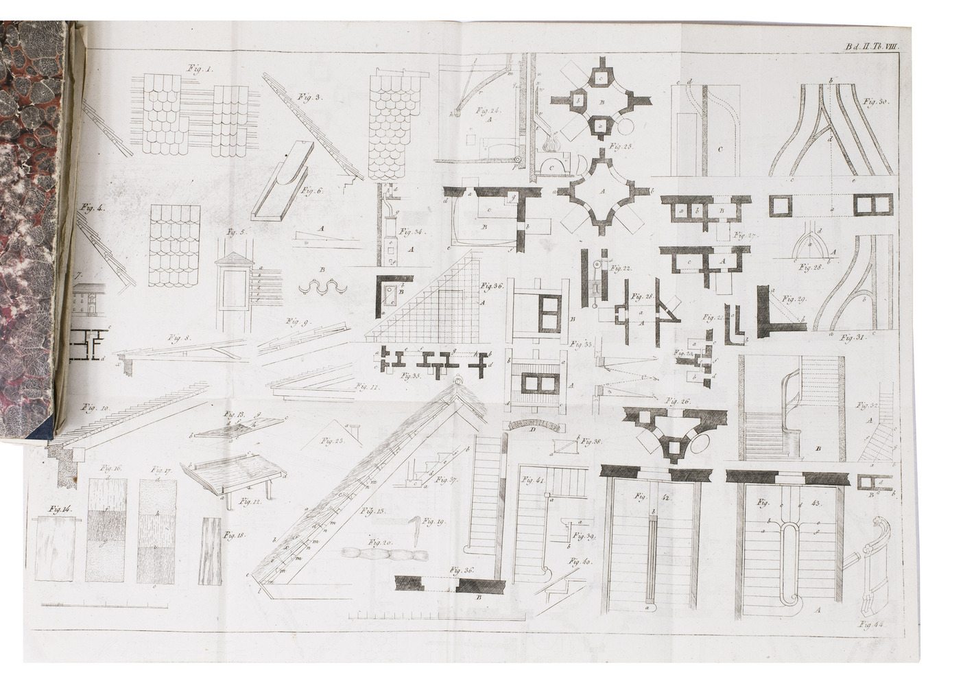 Third and best edition of an extensive manual on agricultural architecture, with additions in both the text and the plates. The work was written by Johann Michael Voit (1771-1846), royal engineer and building-inspector in Augsburg. The first volume concerns the architecture and furnishing of farms, stables, farm-outhouses etc, as well as the architecture of agricultural industrial buildings like breweries, distilleries, tile-works, brick-yards, etc. The second volume is entirely devoted to building materials and the practical construction of the buildings.