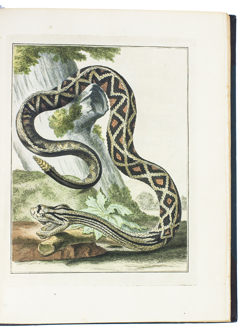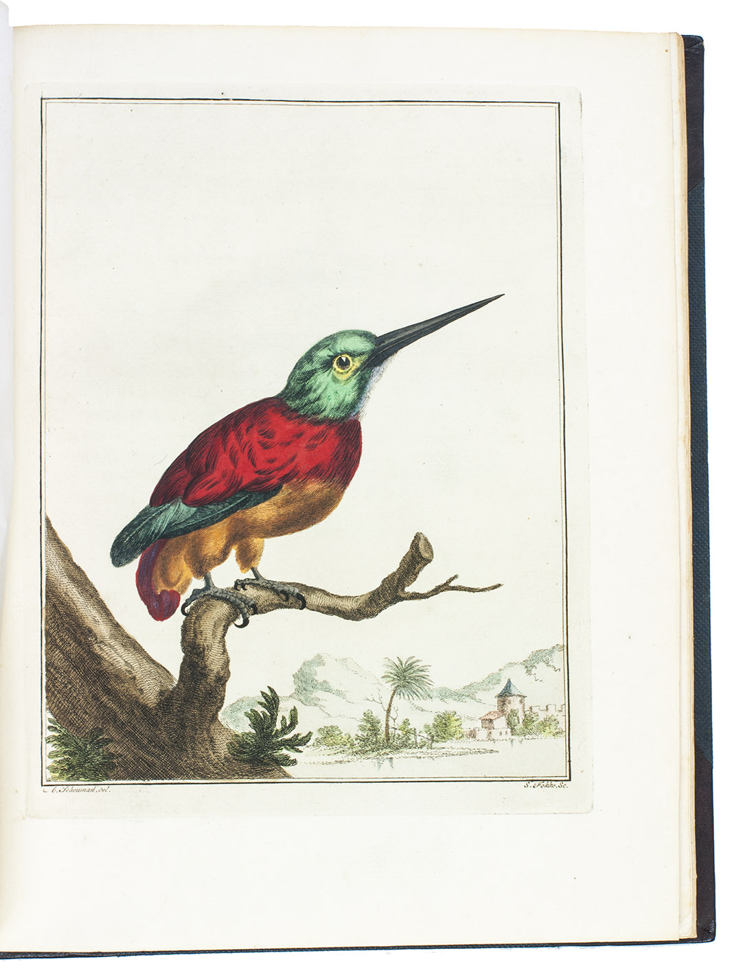 Amsterdam, P. Meijer (parts 1- 14 and 29-31) and heirs of P. Meijer and G. Warnars (parts 15-20), 1766-1787. 31 parts in 1 volume. 4to (26.5 x 20.5 cm). With 33 hand-coloured engraved plates and 1 uncoloured folding engraved plate. 19th-century black half morocco, gold-tooled spine. 15; 8; 8; 12; 22; 8; 9; 6; 7; 7; 7; 10; 8; 20; 12; 6; 6; 6; 10; 10; 6; 6; 8; 8; 23; 15; 12; 14; 14; 44; 12 pp.