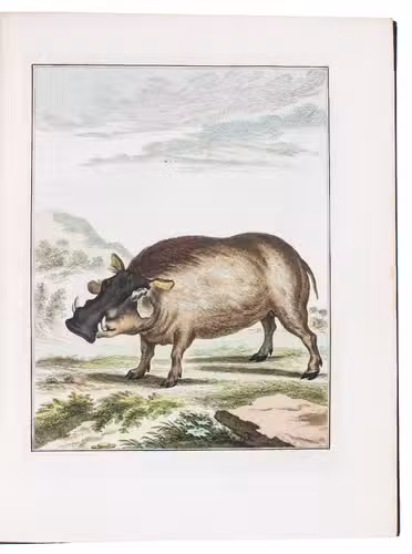 A collection of 31 separately published descriptions of exotic animals kept in the menagerie of prince William V. The animals were imported form the East and West Indies, North America, and Africa, and Vosmaer, director of the menagerie, describes some of them here for the first time. The collection consists of 20 papers on mammals, 8 on birds and 3 on reptiles. It "contains many type illustrations" and includes "a noteworthy description of the Orang-outang from Borneo, with two plates" (Wood). Most of the illustrations were engraved by Simon Fokke after designs by Aert Schouman.