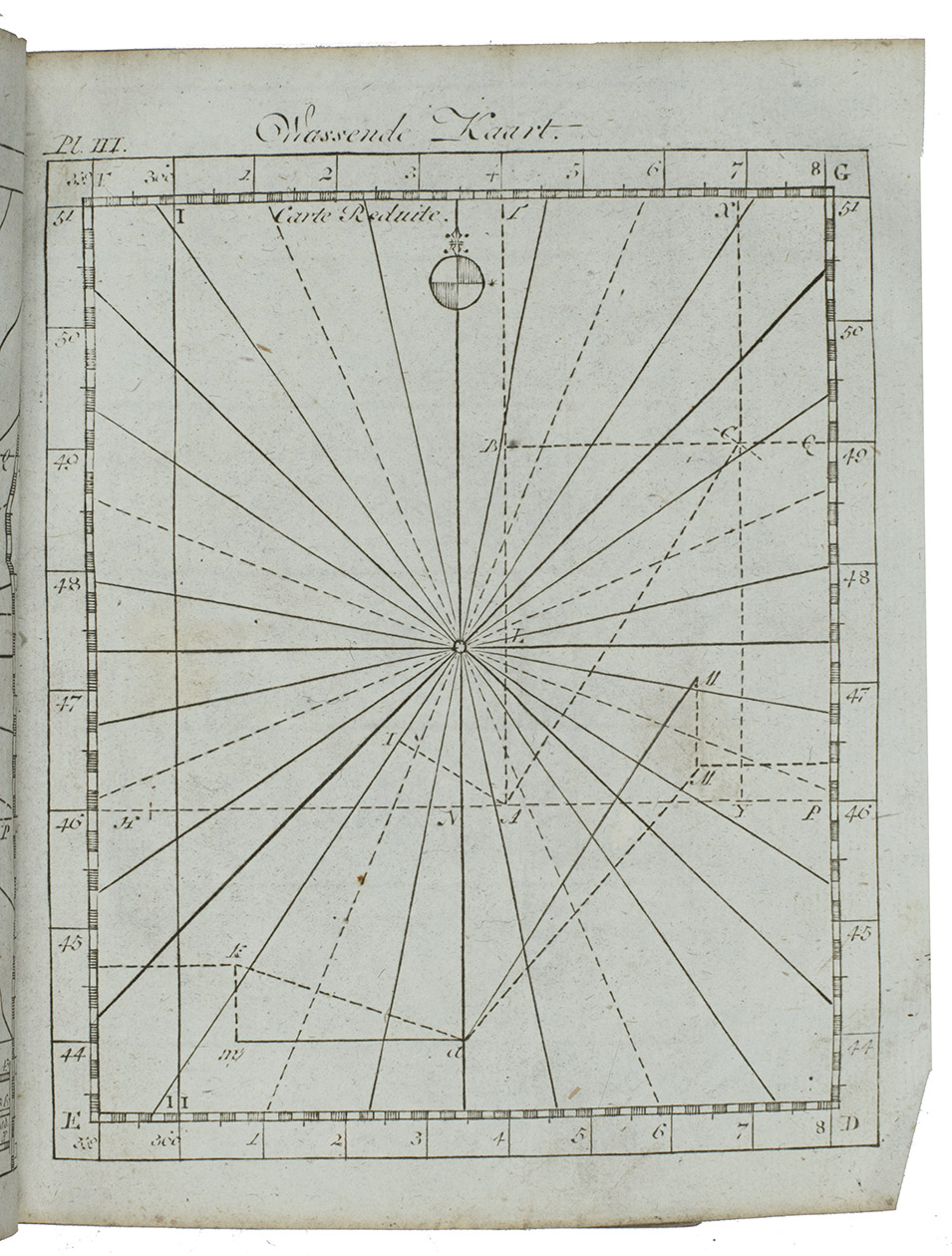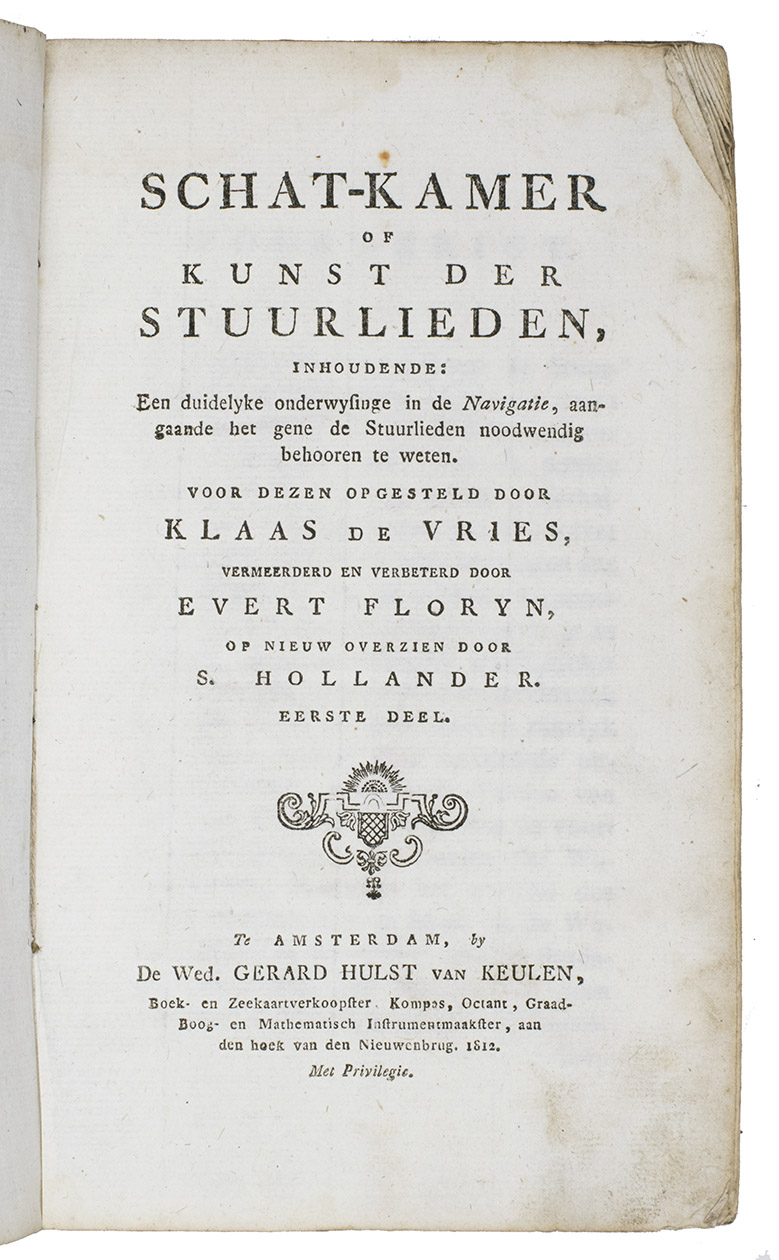 Ad 1: Rare tenth edition of a standard practical manual on the art of navigation, written by Klaas de Vries (1716-1766), a mathematics teacher in Amsterdam, and improved by S. Hollander, who also put the three works together. The fact that De Vriess manual went through eleven editions, the last published in 1818, testifies to the popularity and usefulness of the book. We find only two copies of this rare 1812 edition in WorldCat, one in the Delft University of Technology Library and one in the Bibliothèque Nationale de France.