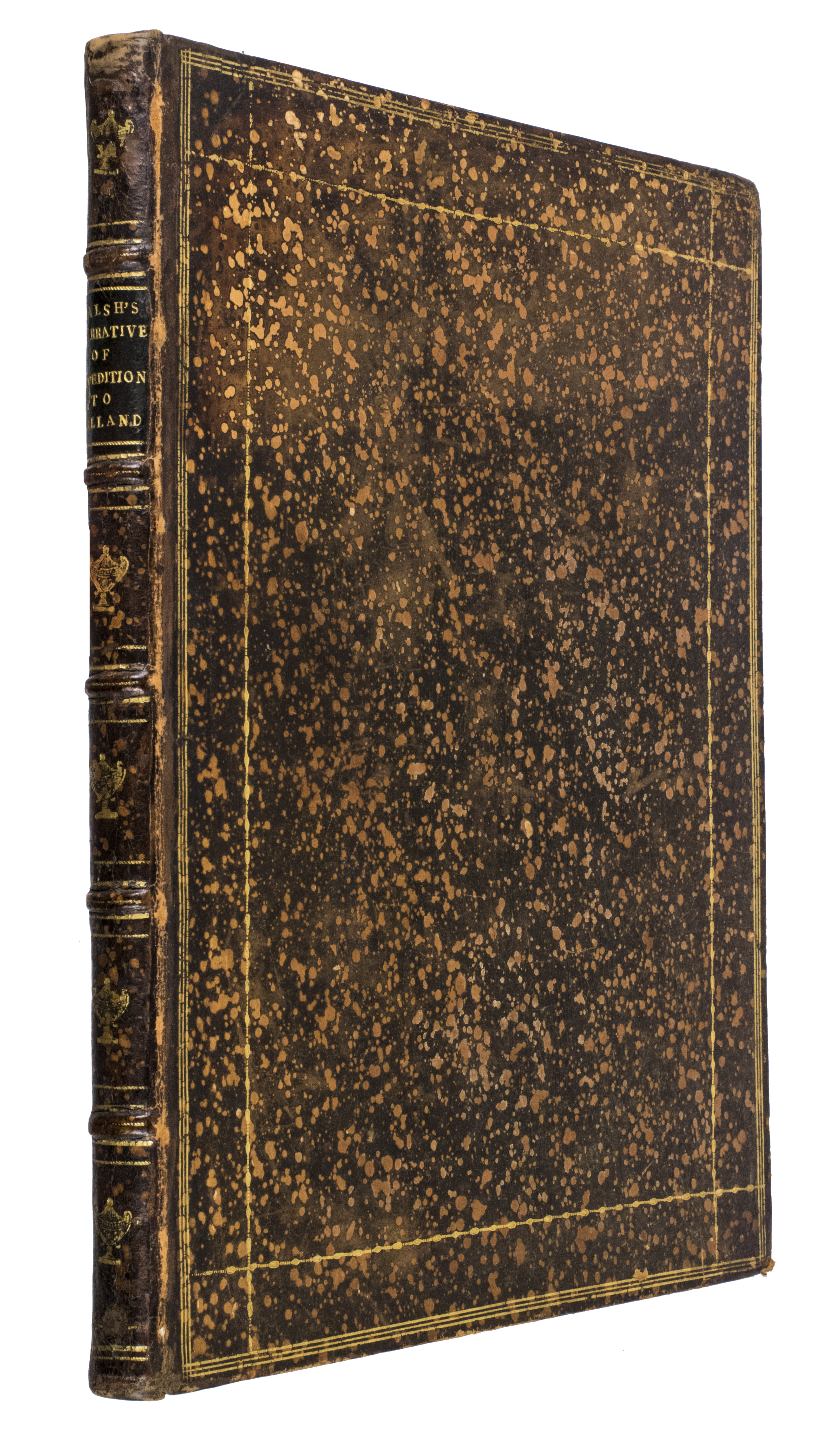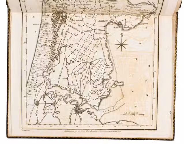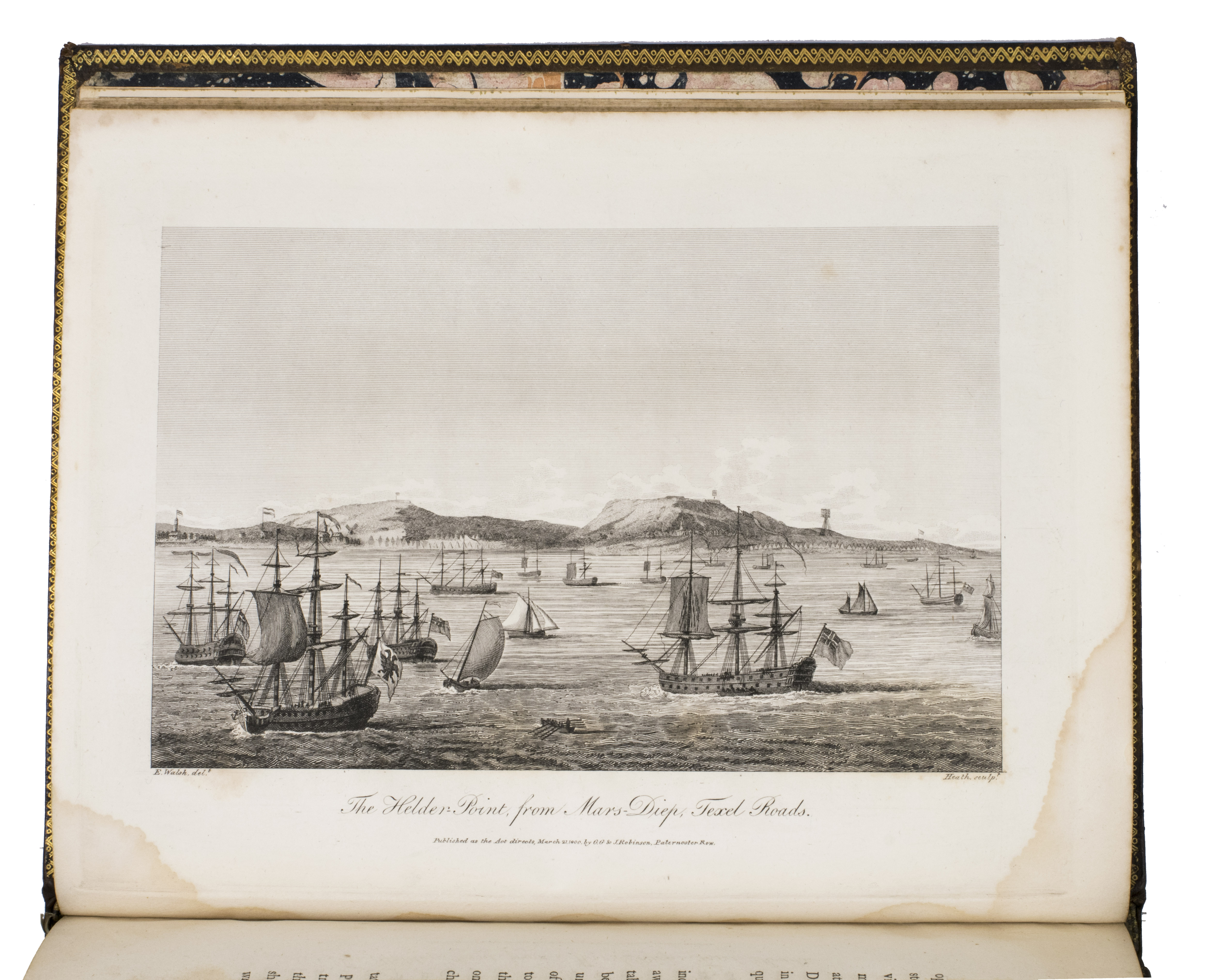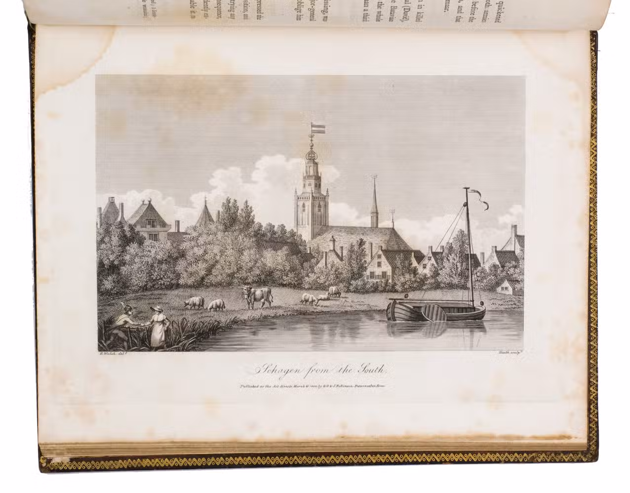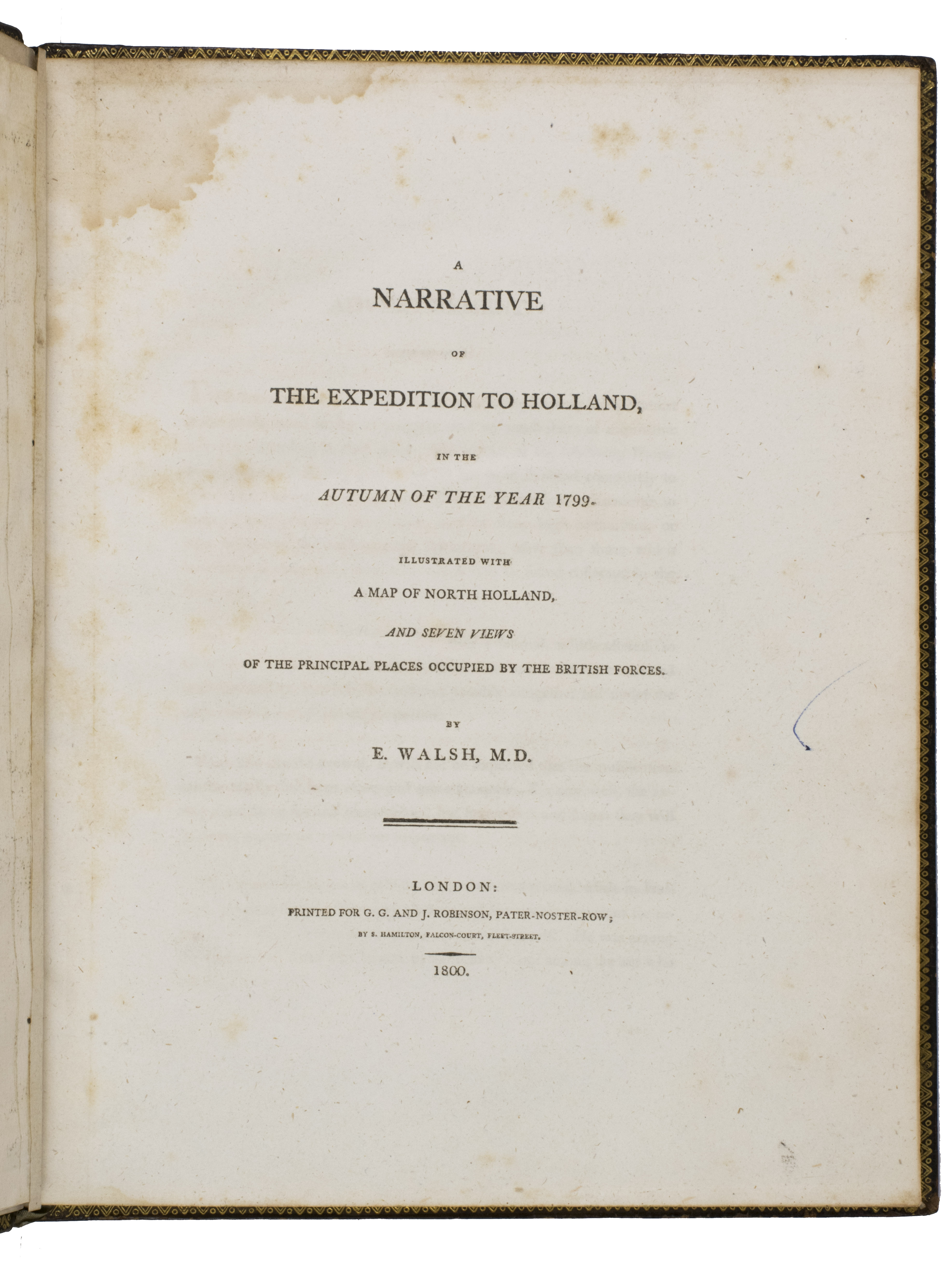 London, for G.G. and J. Robinson (colophon: printed by S. Hamilton, Fleet Street), 1800. Large 4to. With a double-page engraved map of North Holland and 7 full-page engraved plates. Contemporary gold-tooled marbled calf. [2], ii, 164 pp.