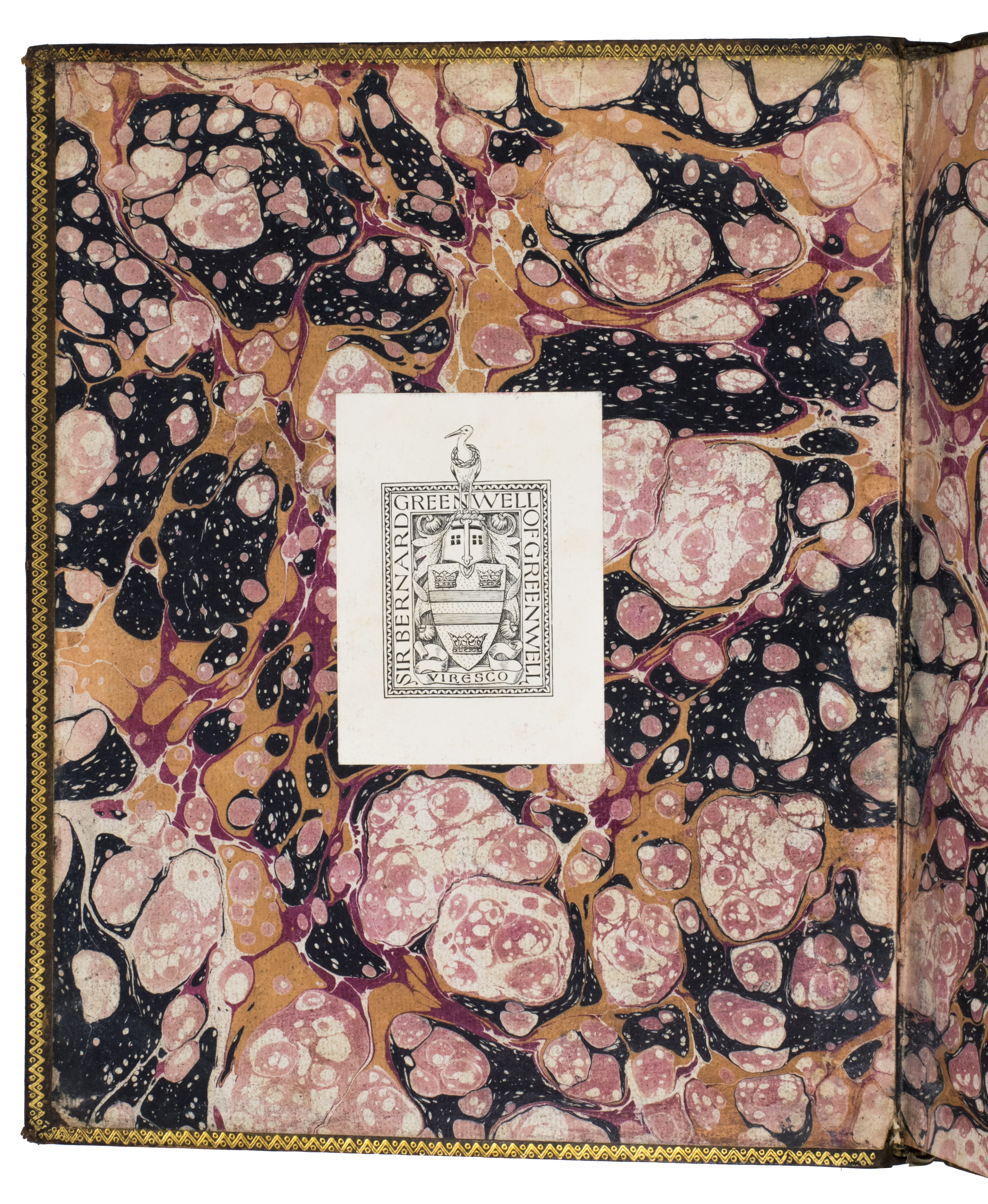 With the bookplate of Sir Bernard Eyre Greenwell (1874-1939) mounted on the front pastedown. The edges and corners of the boards are somewhat scuffed. A ballpoint scratch on the title page, a water stain in the corners of the inner margin in the first few leaves and several leaves in the middle, not affecting the text, occasional foxing, the ink of the plates is slightly offset on the facing page. Otherwise in good condition. ESTC T117434; WorldCat 67017621.
