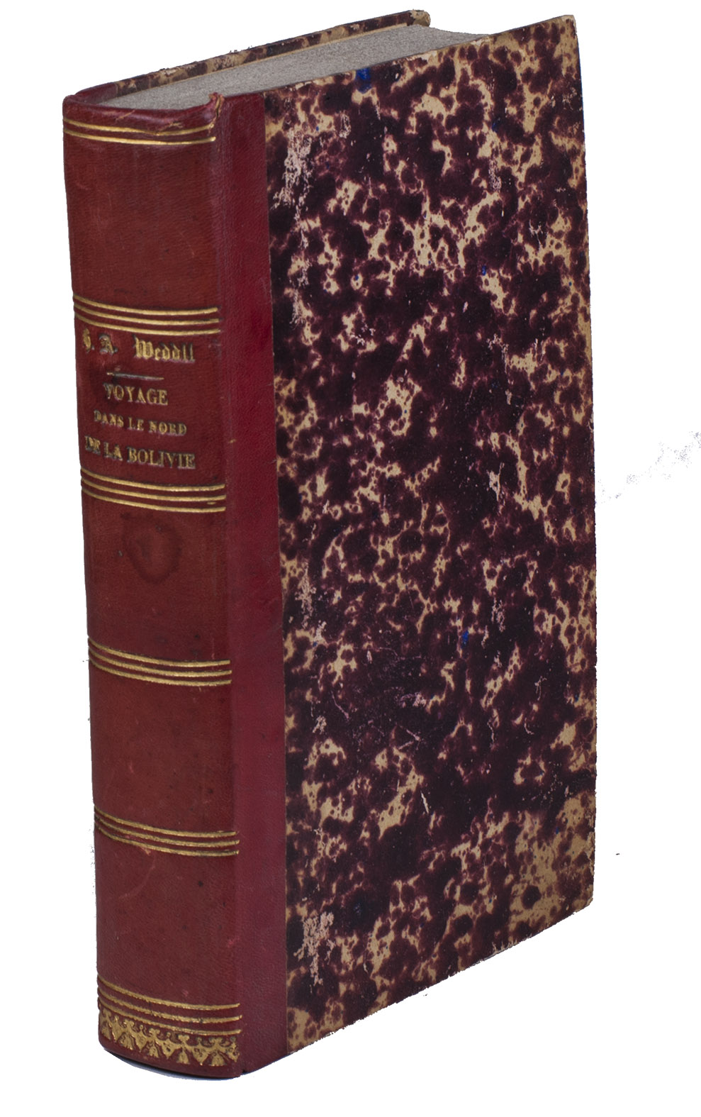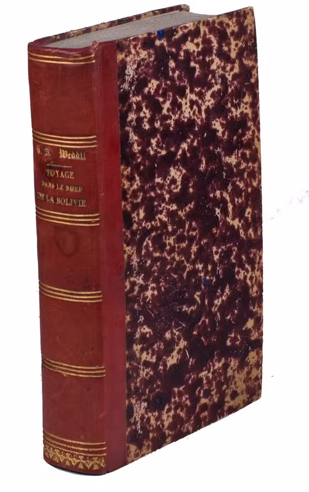 First and only edition of the accound of Weddell's second voyage to South America. In 1843, Weddell had joined the expedition of Francis de Castelnau (1810-1880) to South-America. In 1845 Weddell left the expedition in Paraguay and travelled on his own to Peru and Bolivia to study the genus Cinchona. Three years later he "returned to France with with the most valuable contribution to the materials of the Flora of the High Andes which had ever been brought together" (Hemsley & Pearson). Weddell returned to South America in 1851, at the head of a commercial expedition to investigate the gold deposits in the Tipuani valley and, of course, collect plants. In his travel account he extensively describes the botany and zoology of Bolivia, as well as his misfortunes in acquiring an alpaca, meetings with indigenous people, a ball on the account of a Bolivian wedding and "the filthy horrors of a Bolivian kitchen" (Blackwood's magazine), including several recipes.