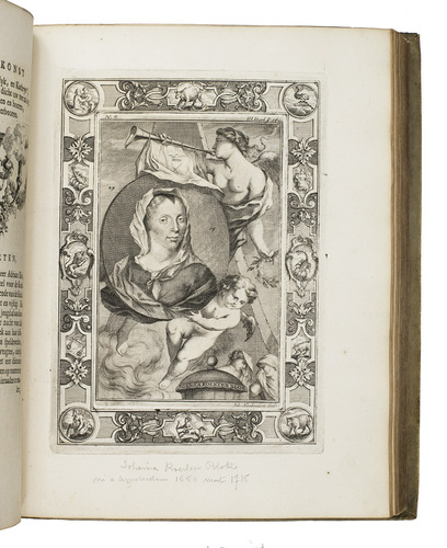 The first three parts were all published in 1729; the fourth - 40 years later - is mainly devoted to the painters from the Art Academy at The Hague. All 40 plates with artists' portraits, the frontispiece, 2 other portraits and the night scene are in the first 3 volumes (the later volume 4 has no plates). The lavish vignettes throughout the volumes are worth mentioning as well, mostly executed by Picart and apparently made for the present publication.