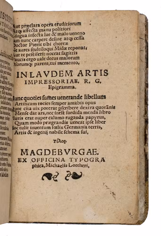 Magdeburg, Michael Lotter, (ca. 1535). Sm.8vo. Old boards. [75] ll.