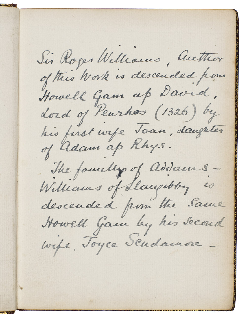 With the text "Bound by Riviere & Son" giltstamped at the lower front turn-in, and a 19th-century annotation on the first free flyleaf about the author's family. The binding is somewhat soiled, with a crescent moon shaped stain on the front board. The work is somewhat browned throughout, especially around the edges of the leaves, it has been cut somewhat short, affecting some of the printed marginal notes. Otherwise in good condition. Cockle, Military books, 93; ESTC S120160; Pollard & Redgrave 25731; USTC 3008223 (37 copies); cf. Evans, J., The works of Sir Roger Williams.
