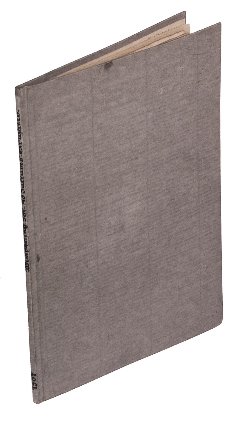 [Strasbourg, Jean Prüss the elder, ca. 1507]. 4to (21 x 15 cm). With a large woodcut decorated initial. Set in 2 sizes of roman type with a few words in a large textura gothic type. With the initial coloured brown by an early hand. Boards covered with grey laid paper (1940s?). [7], [1 blank] pp.