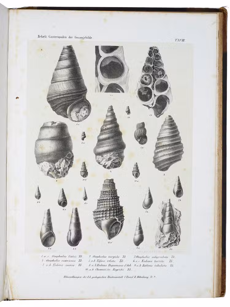Die Gastropoden der Gosaugebilde in den nordöstlichen Alpen. [...] Aus den Abhandlungen der k.k. geologischen Reichsanstalt. 1. Band. 2. Abtheilung, Nr. 2. Mit 24 lithographirten Tafeln.