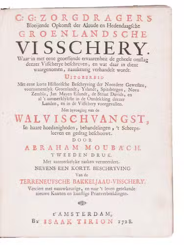 Bloeijende opkomst der aloude en hedendaagsche Groenlandsche visschery. ... Uitgebreid met eene korte historische beschryving der noordere gewesten, ... Met byvoeging van de walvischvangst, ... Nevens een korte beshryving van de Terreneufsche Bakkeljaau-Visschery.